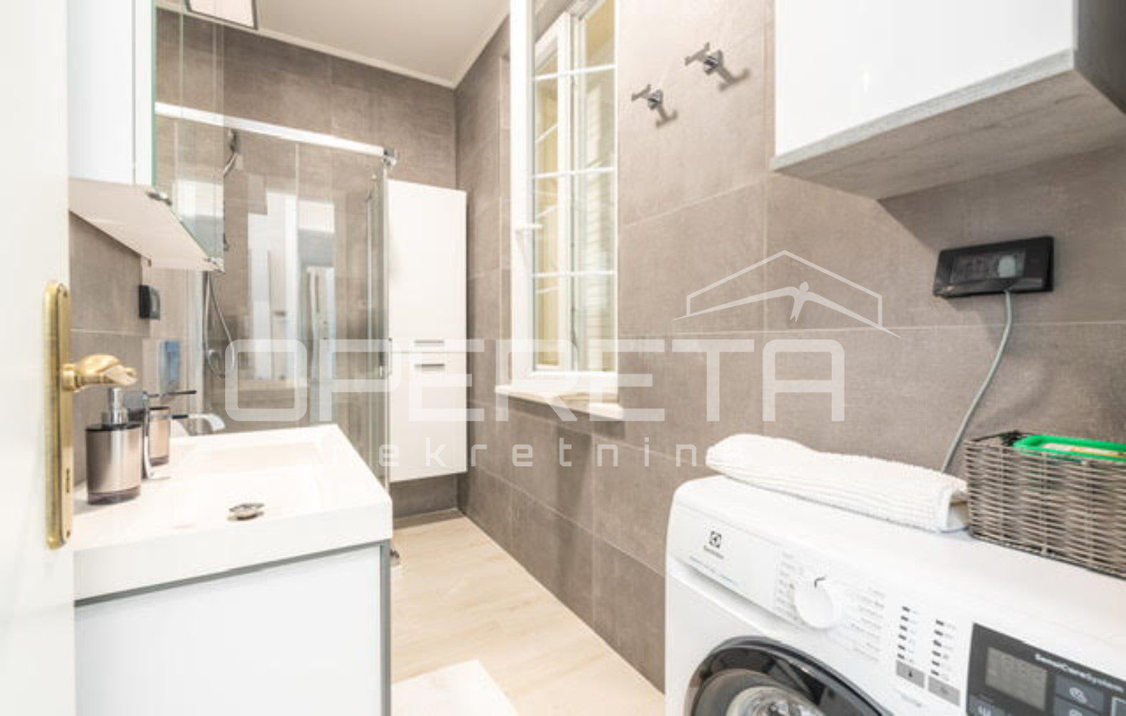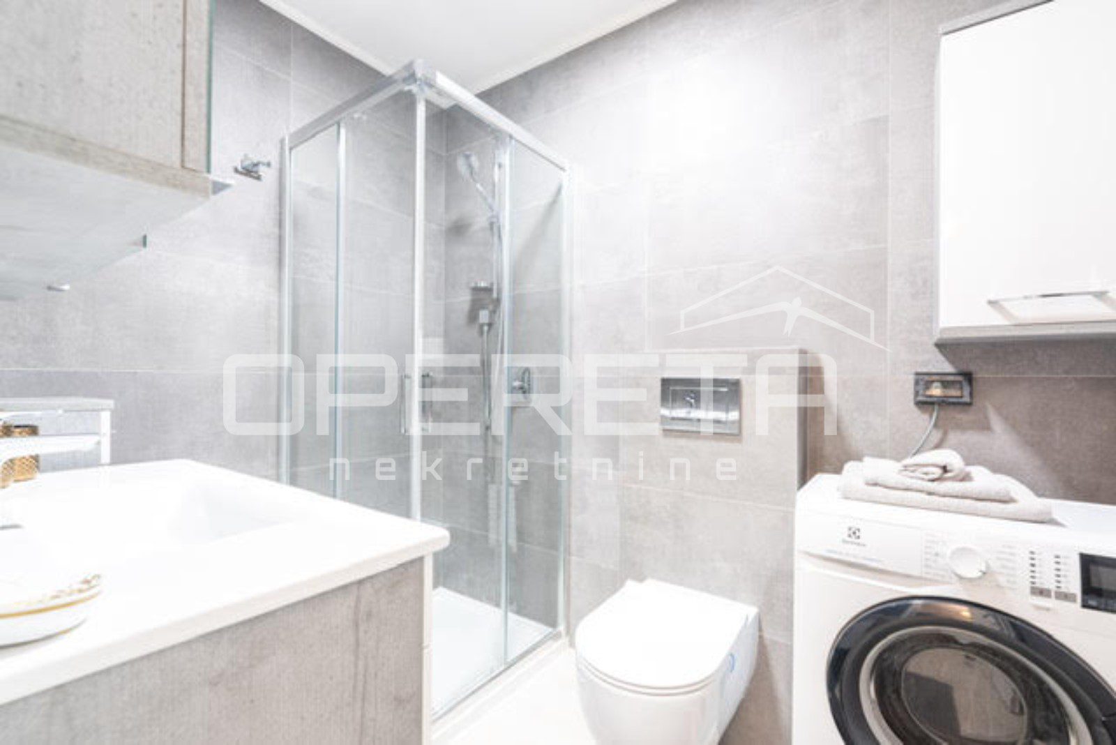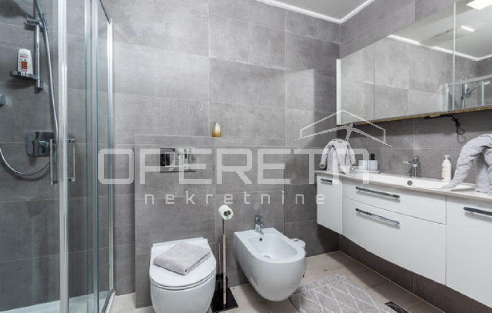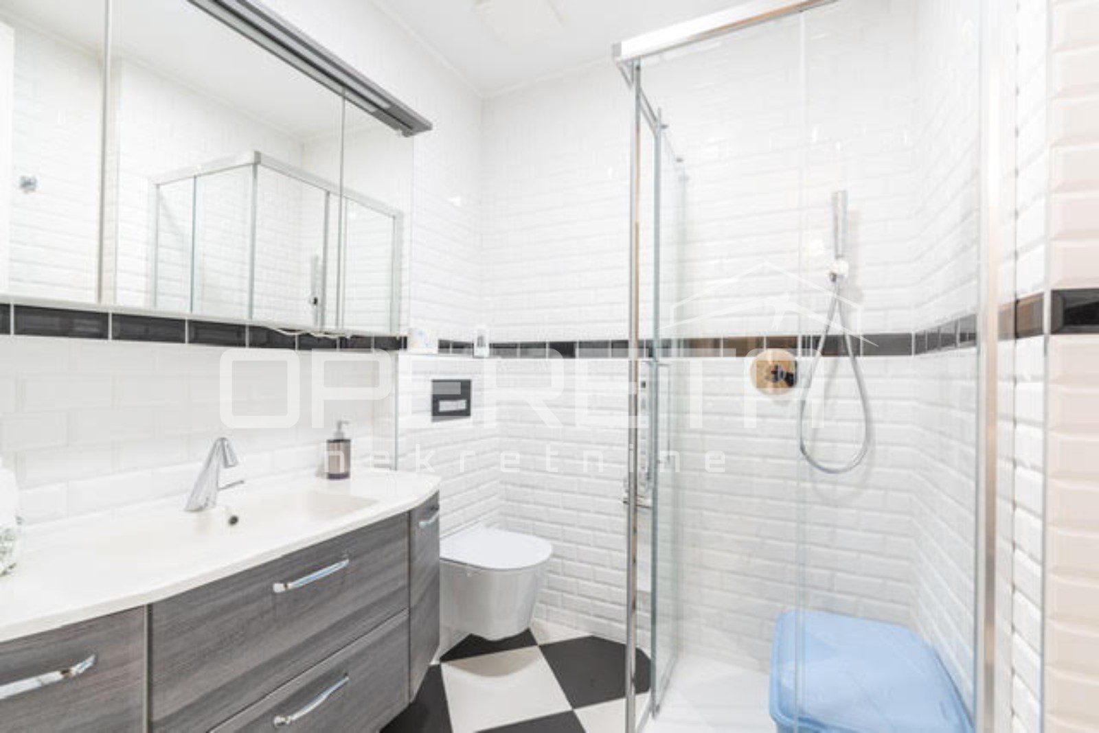 Natkrivena terasa uz bazen i sunčalište nadovezuje se na dnevni boravak i pruža maksimalan užitak boravka na otvorenom. Cijela kuća je klimatizirana i ima podno grijanje na sustav toplinskih pumpi.