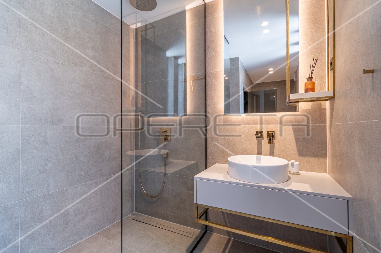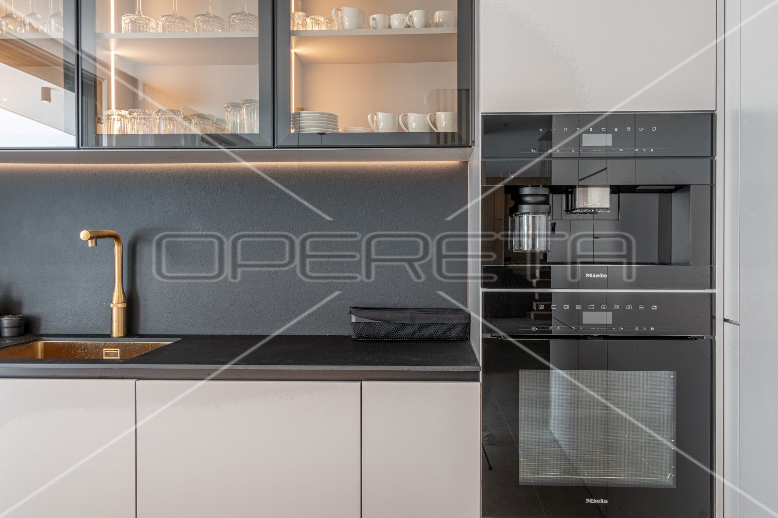 rasvjetom na sebi, kao i kuhinjskim otokom po mjeri, od najsuvremenijih kvalitetnih materijala, s luksuznim kućanskim aparatima marke Miele.