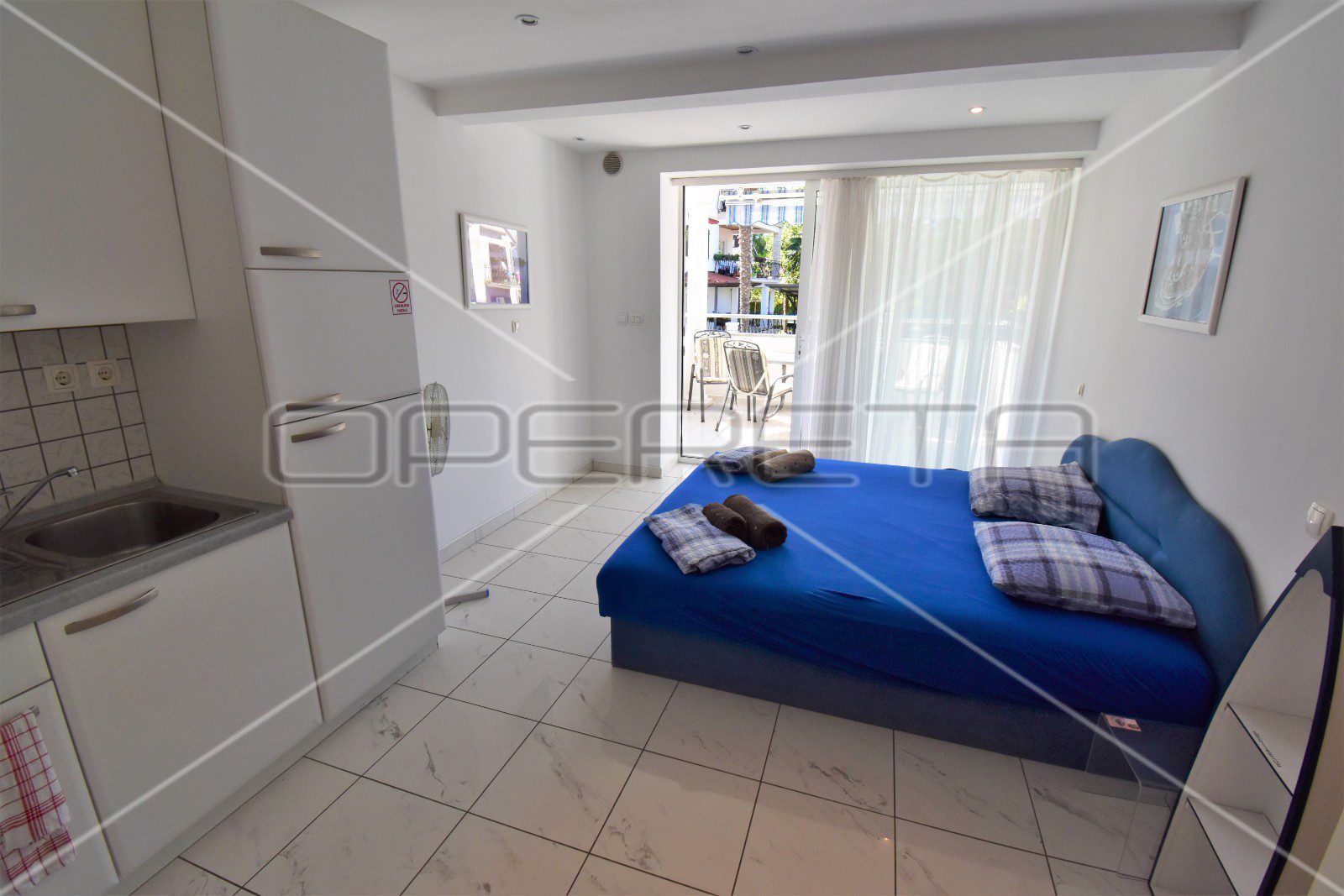 Ovaj vrhunski izgrađeni objekt smješten je top turističkom dijelu grada prva zona Centener, blizu Hotela Eden, Lone,Monte Molini, Grand Hotela Park, Zlatnog rta parka prirode Punta Corrente i najljepših prirodnih plaža. Objekt je izgrađen po visokim standardima gradnje gdje se pazilo i na najmanje detalje za potpunu funkcionalnost. Kuća je projektirana u 4 etaže. Prva etaža, ujedno i garaža, služi kao spremište i praonica s dovoljno mjesta za prenamjenu u dodatnu smještajnu jedinicu. Svaka od ostalih etaža sastoji se od po 2 opremljena i namještena studio apartmana. Svaki apartman ima svoju kupaonicu, kuhinju i veliku natkrivenu terasu po 18 m2 na kojoj turisti provode najviše vremena.