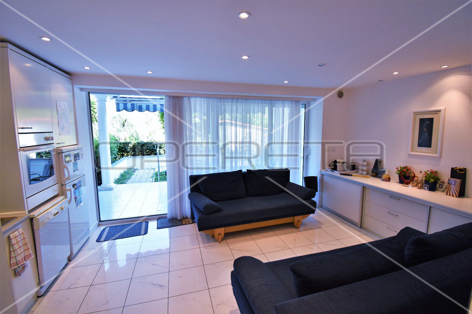 Objekt je opremljen s detektorima dima, protuprovalni alarmima, el. Roletama, Schüco alu. profilima, sistemom univerzalnoga pametnog ključa, pripremljenim priključcima za sunčeve kolektore, kotao za toplu vodu i podno grijanje od 4 kW dovoljan za svih 6 jedinica, SVEA kuhinja, Gorenje bijela tehnika, Groe sanitarija i krovnim ventilatorima za unakrsnu dijagonalnu ventilaciju kompletnog objekta. Unutarnje obloge su u bijelom mramoru Carara iz Italije, porculanskim pločicama te dizajn stepenica je obrađen s prvoklasnim lakiranim drvenim plohama.