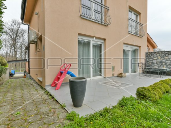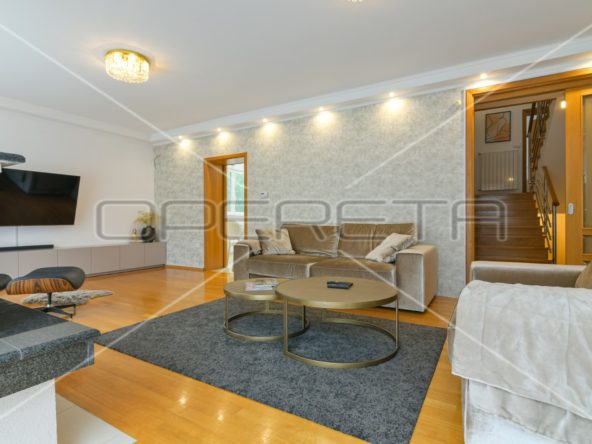 Prodaje se kuća, dvojni objekt, izgrađena 2011. a 2023. adaptirana, kompletno namještena i opremljena se prodaje. Ima okućnice ispred i iza kuće, parking natkriveni i nenatkriveni te garažu. U prizemlju se nalazi toalet, sauna, direktna povezanost s garažom, na polu etaži se nalazni dnevni boravaka s izlazom na terasu i vrt te blagovaonica i kuhinja, na drugoj polu etaži smještena je soba s kupaonicom, ormarom te izlazom na balkon, na trećoj polu etaži smještene su dvije sobe te kupaonica.