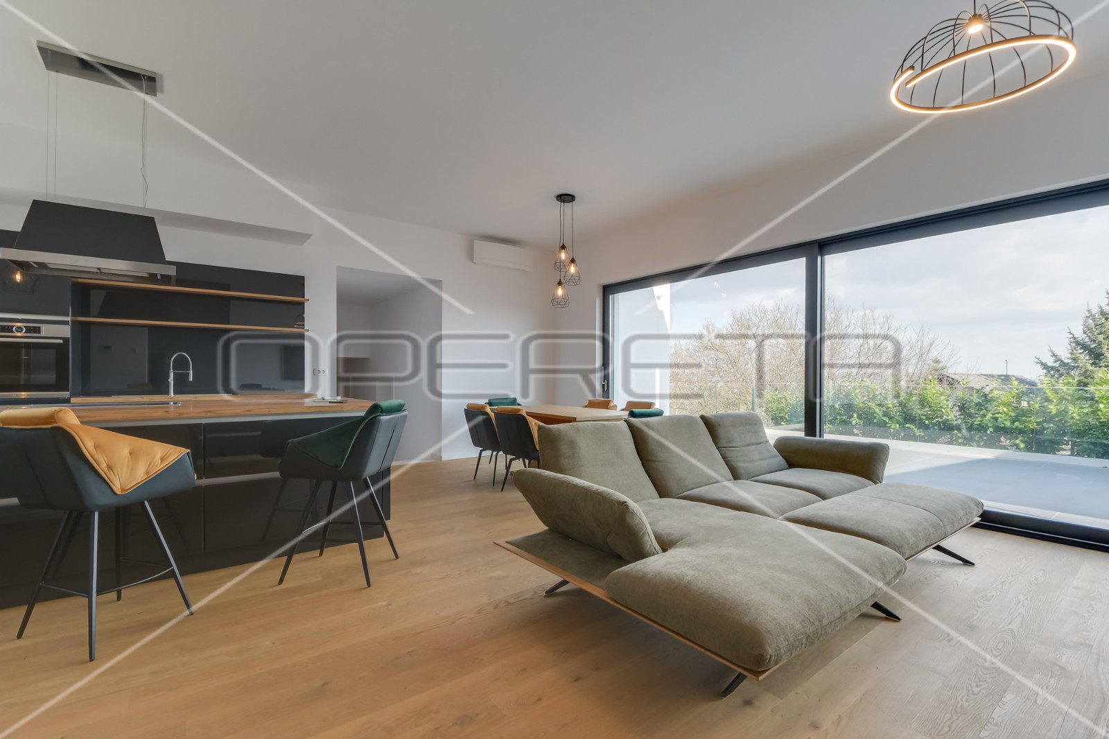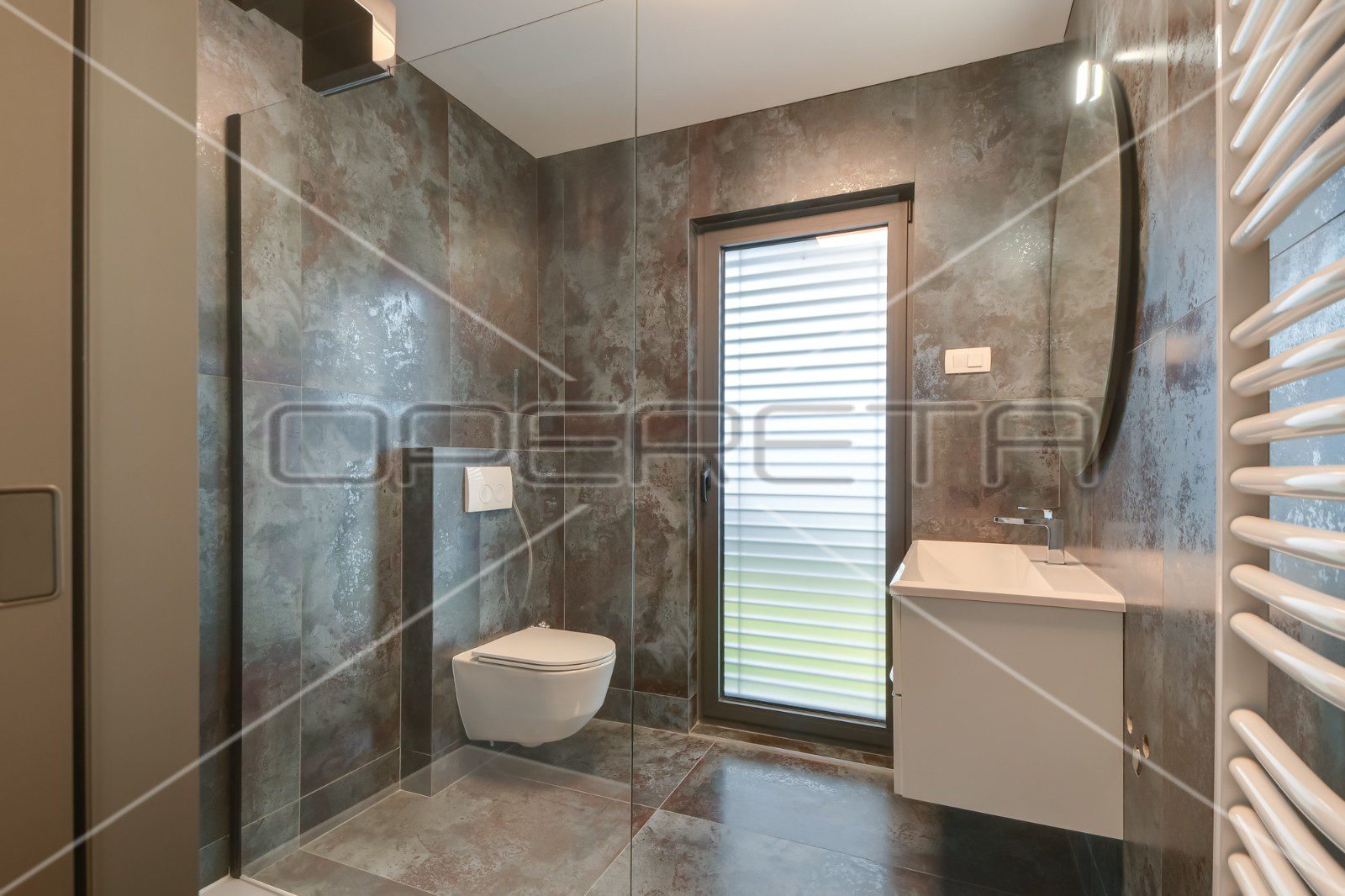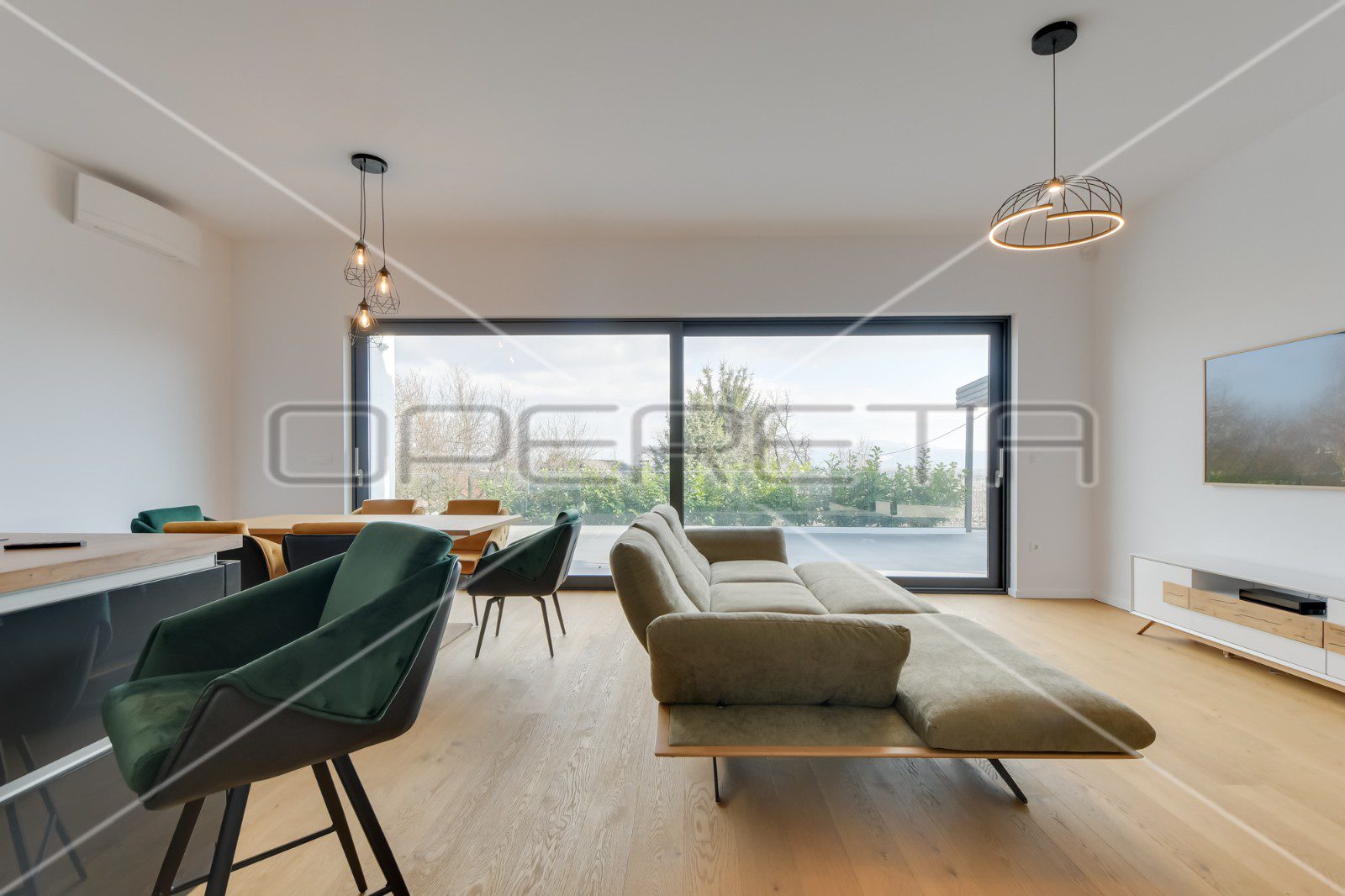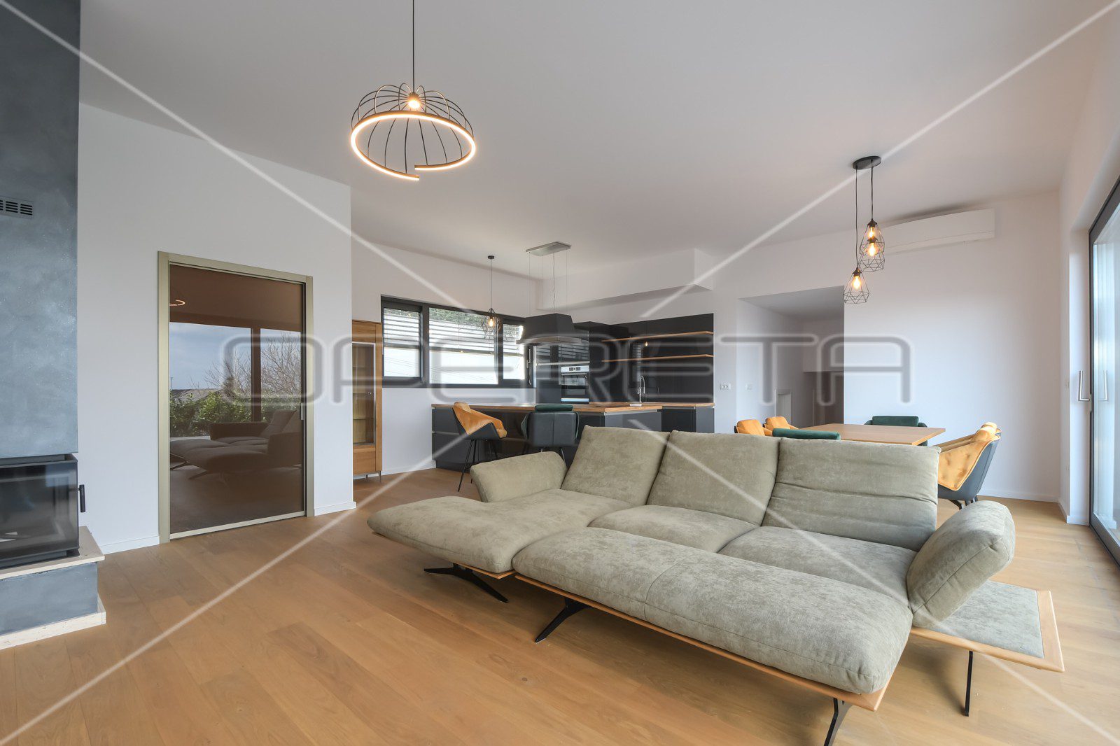 Izgrađena 2020g. Kuća se prostire na dvije etaže. U prizemlju se nalazi dnevni borak s blagovaonom i kuhinjom, tri sobe od kojih je jedna master bedroom s walk in ormarom i kupaonicom te još jedna kupaonica.