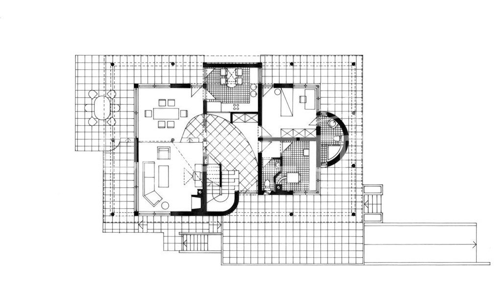 Kuća je oblikovana u skladu s orijentacijom prema suncu, što omogućuje maksimalno korištenje prirodne svjetlosti kroz dan.