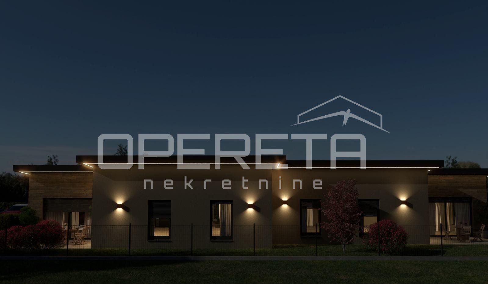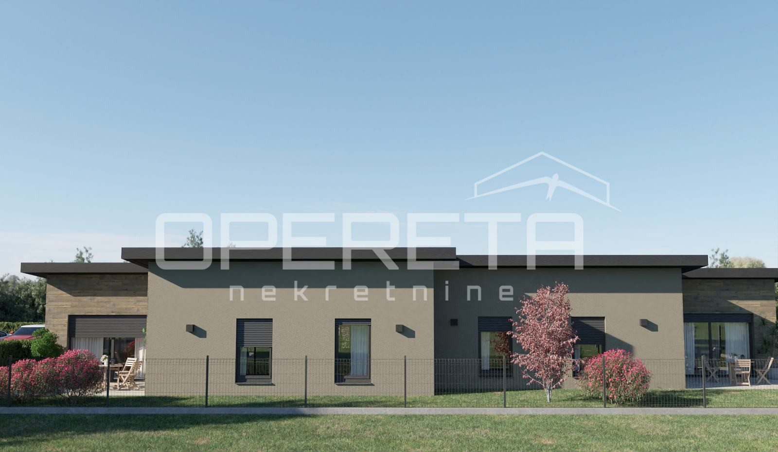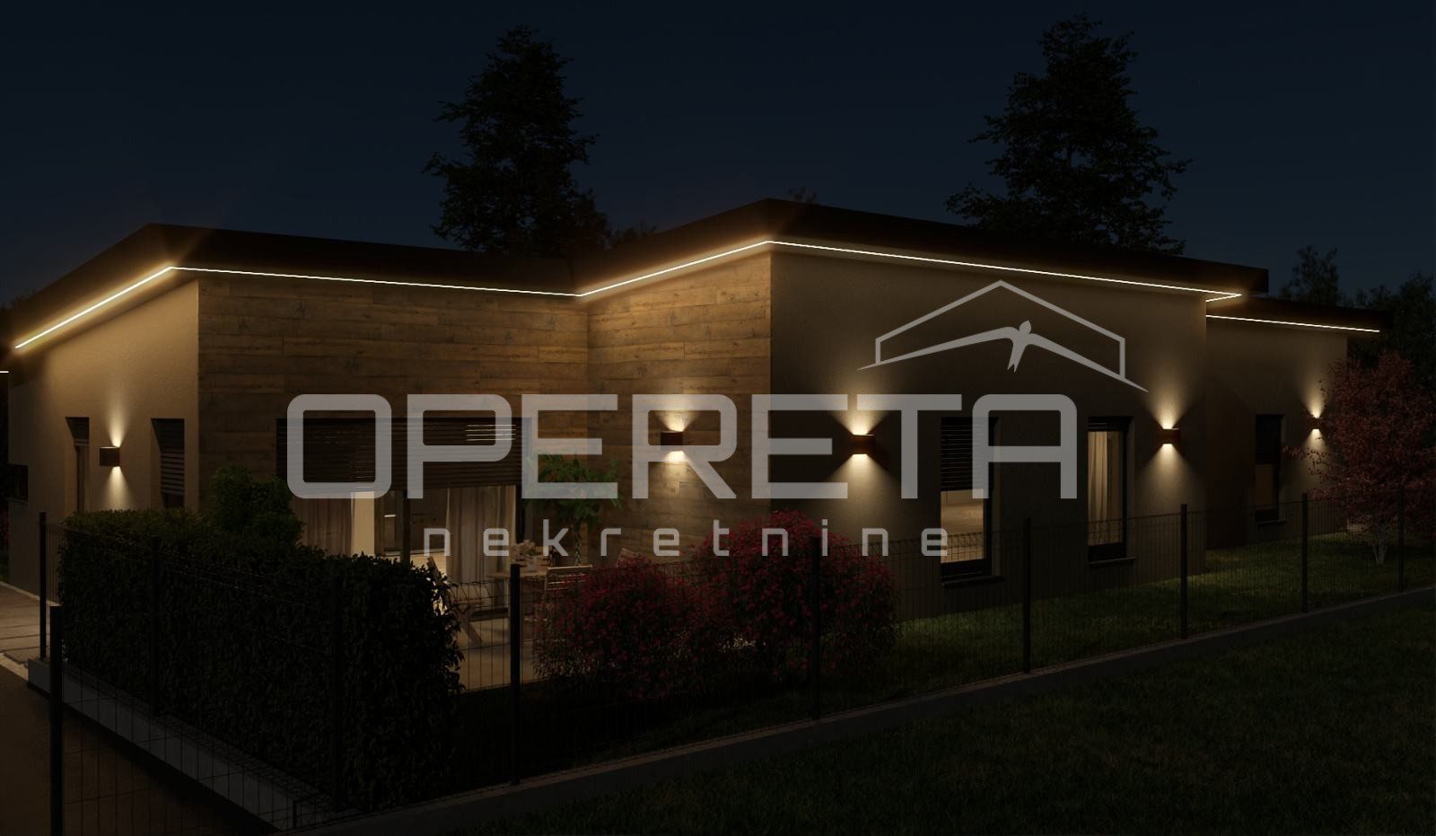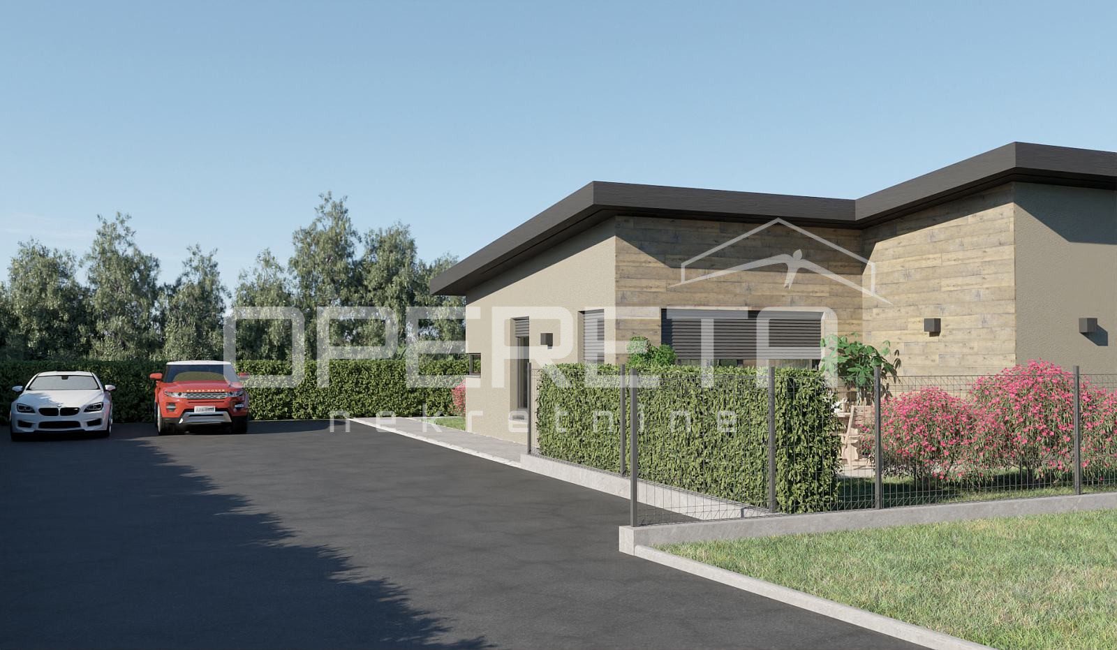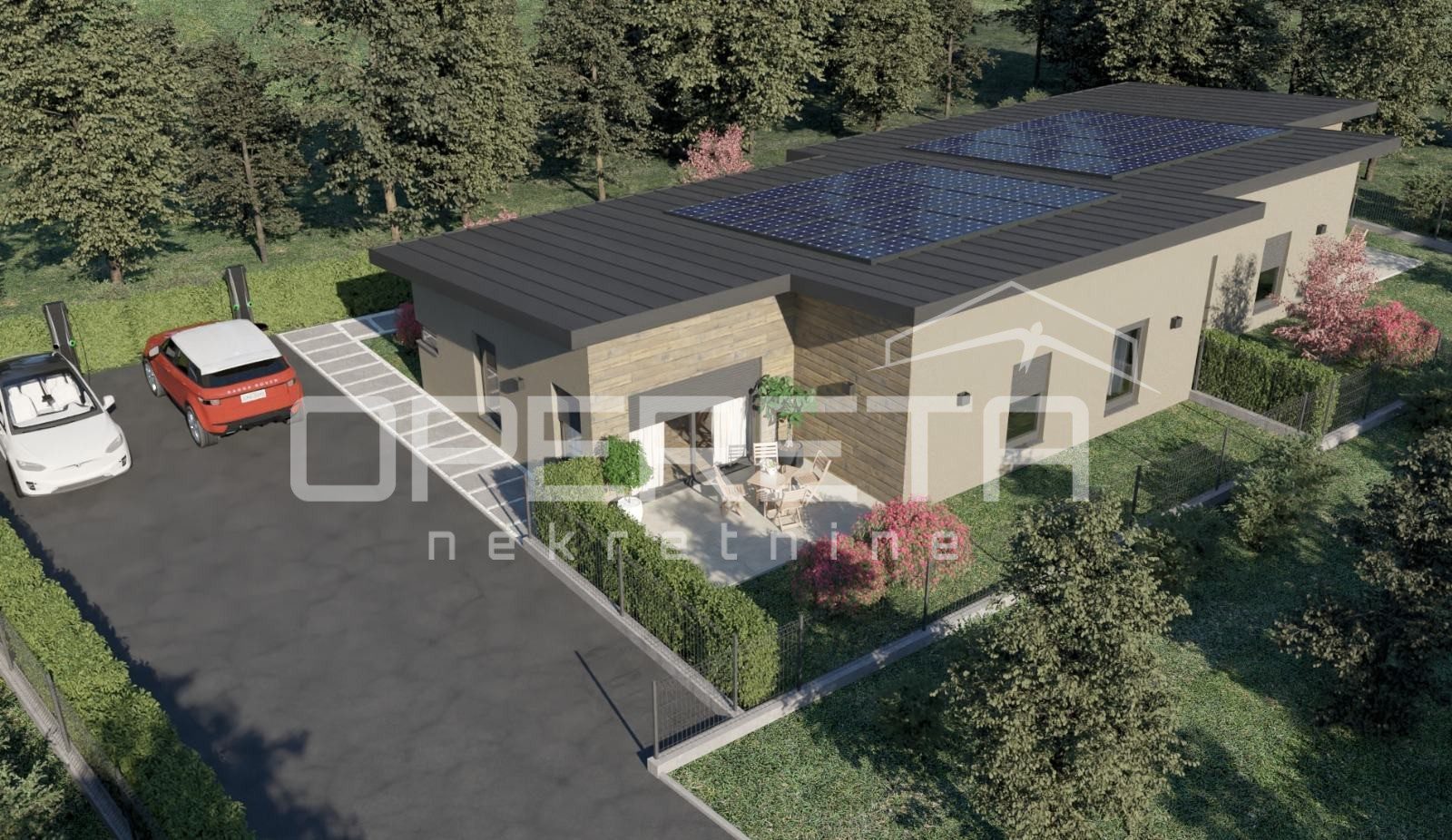Prodaje se nova niskoenergetska kuća na mirnoj obiteljskoj lokaciji, udaljena samo 2 minute vožnje od izlaza na autoput, te 3 km od kolodvora.
