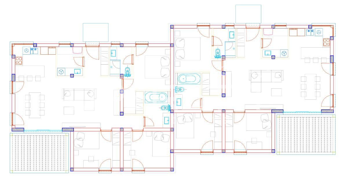 Kuća se sastoji od open space boravka i kuhinje sa blagovaonicom, tri spavaće sobe i dvije kupaonice. Velike staklene stijene i prozori omogućavaju maksimalnu iskoristivost dnevnog svjetla.