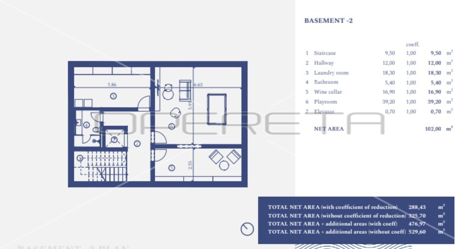 Vila 44 je na 5 etaža ima lift. Sadrži 4 spavaće sobe, studio sobu, 5 kupaona, otvoreni dnevni boravak s fantastičnim pogledom na more, dva garažna mjesta, infiniti krovni bazen i terasu sa vanjskom kuhinjom, te vrt.