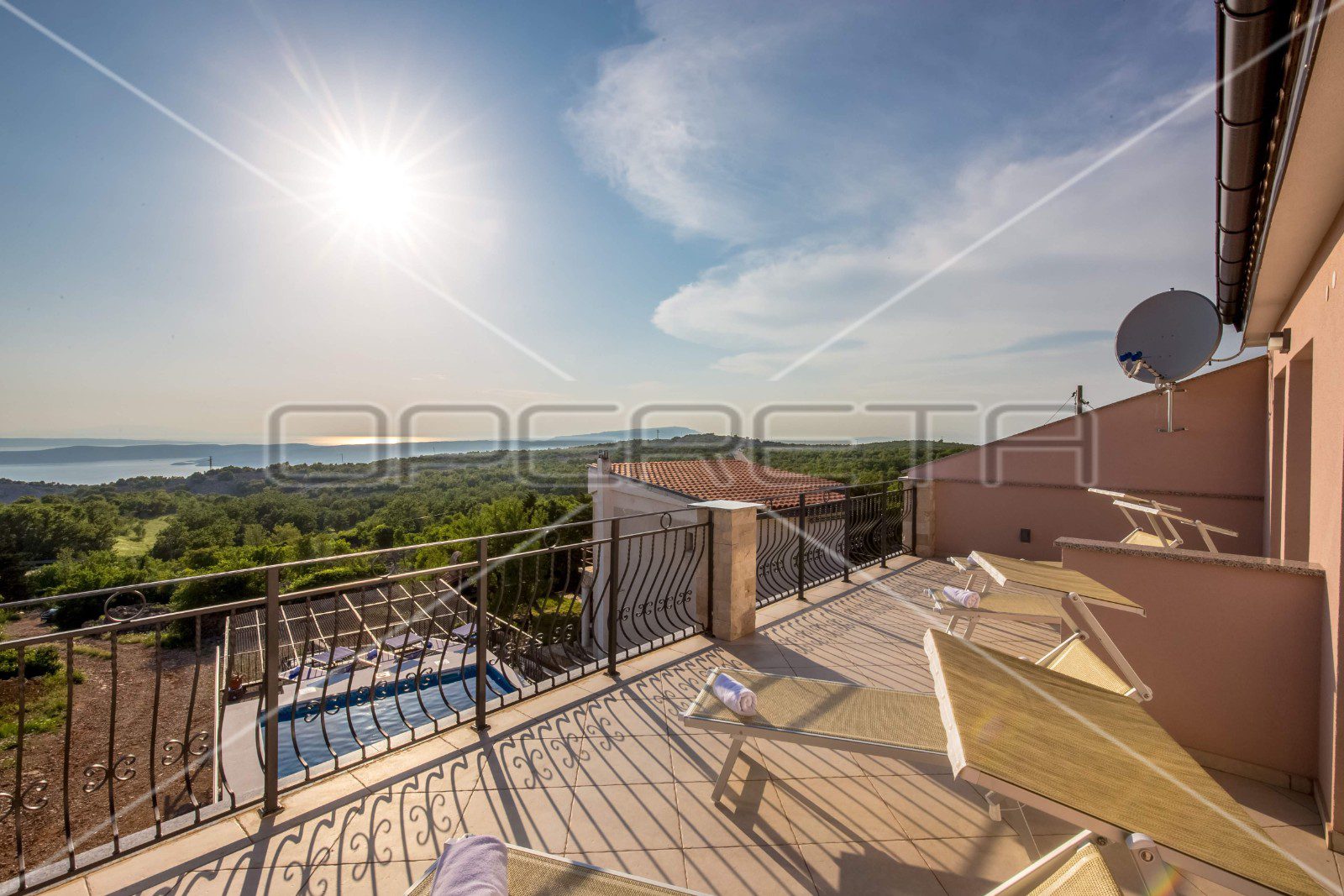 Na prvom katu su dvije svijetle velike spavaće sobe, svaka s kupaonicom s hidromasažnom kadom. Obje sobe imaju izlaz na prostranu terasu s prekrasnim otvorenim pogledom.