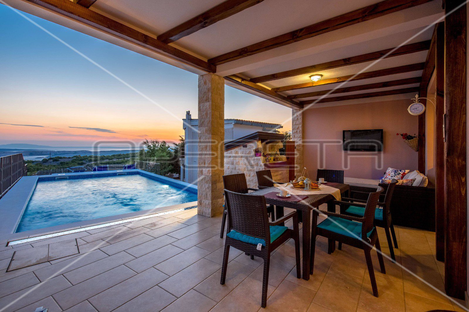 Nevjerojatna rijetkost je pronaći ovakvo nekretninu i da bude ponuđeno za kupnju. Ova prostrana novoizgrađena kuća smještena na izdvojenoj lokaciji i mirnom, odnosno zelenom području iznad mjesta Jablanac.