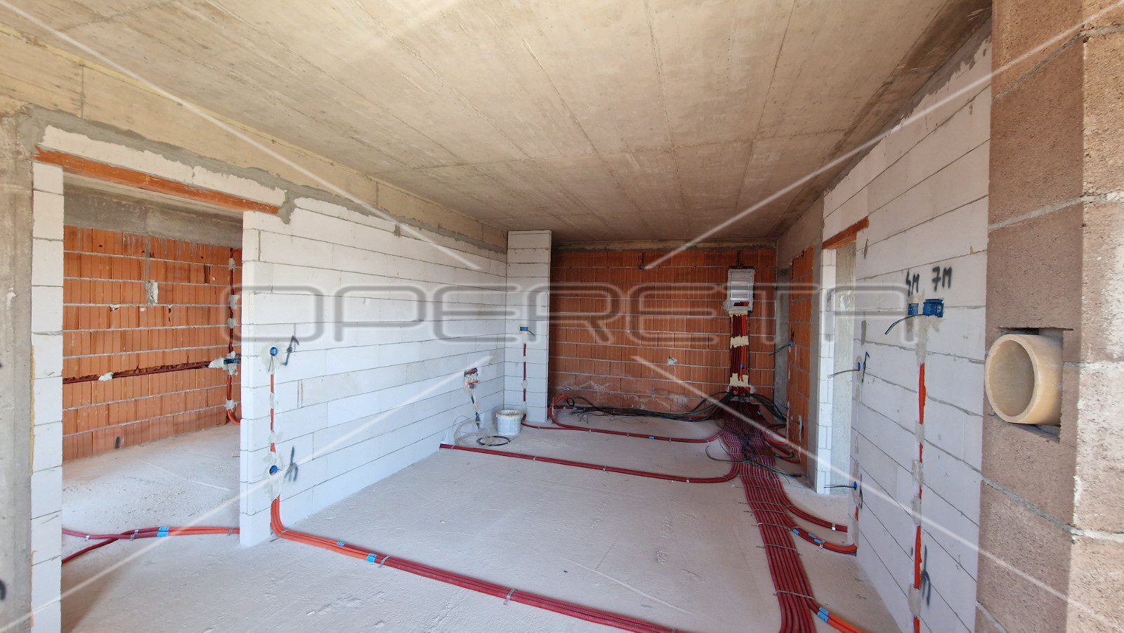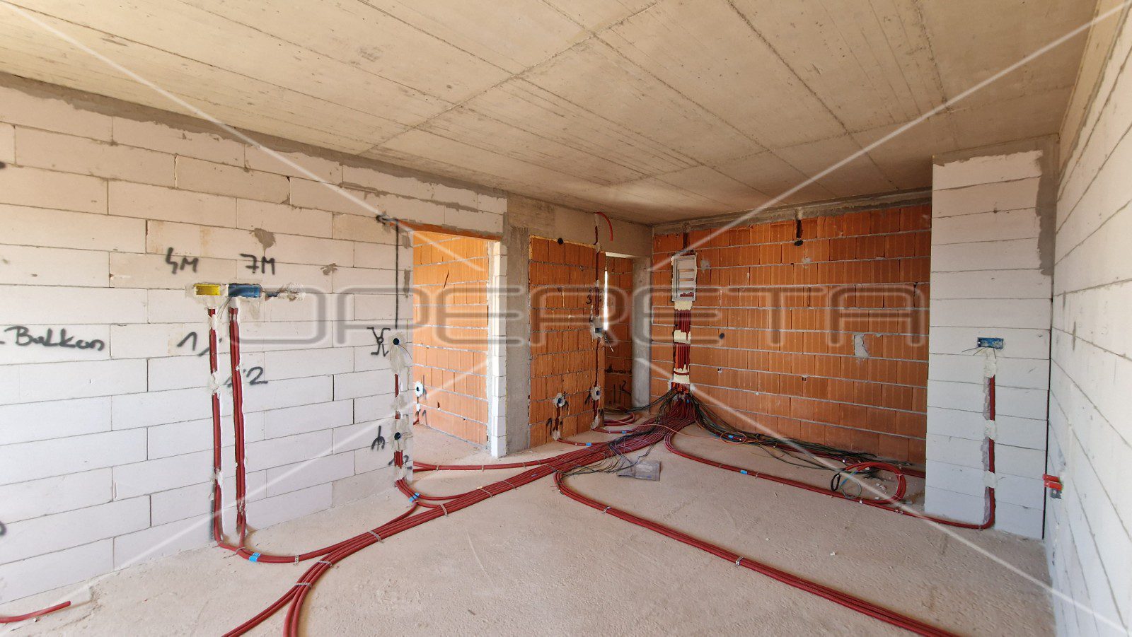 Kompletne instalacije (struja, voda i odvodnja) su sprovedene te su potrebni završni radovi.