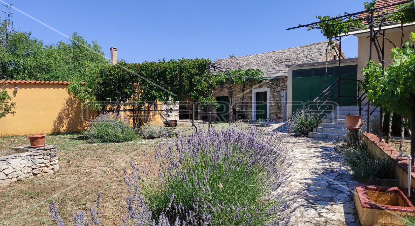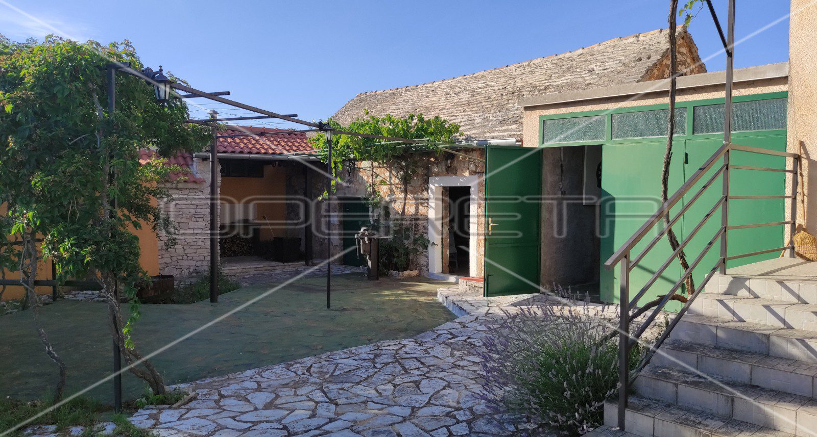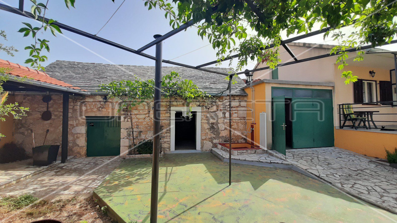 Ono što posebno krasi ovo imanje svakako je južno ograđeno dvorište koje je idealno za uživanje i odmor u ljetnim danima s obzirom da je zaklonjeno sjenicom od divlje loze.