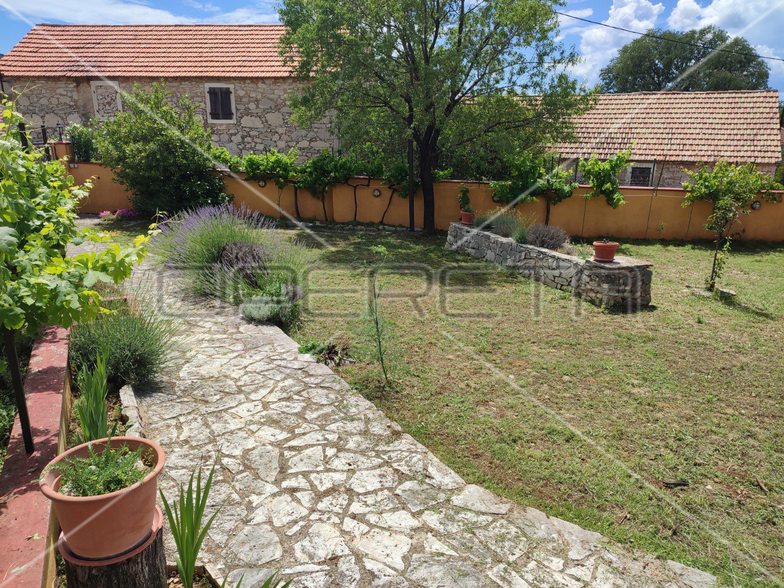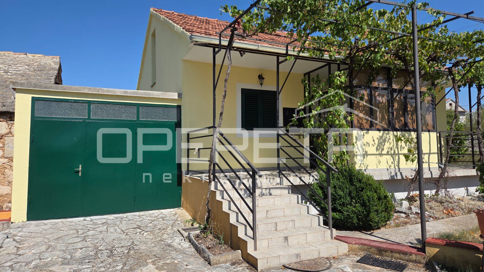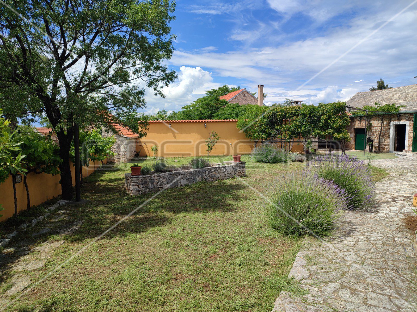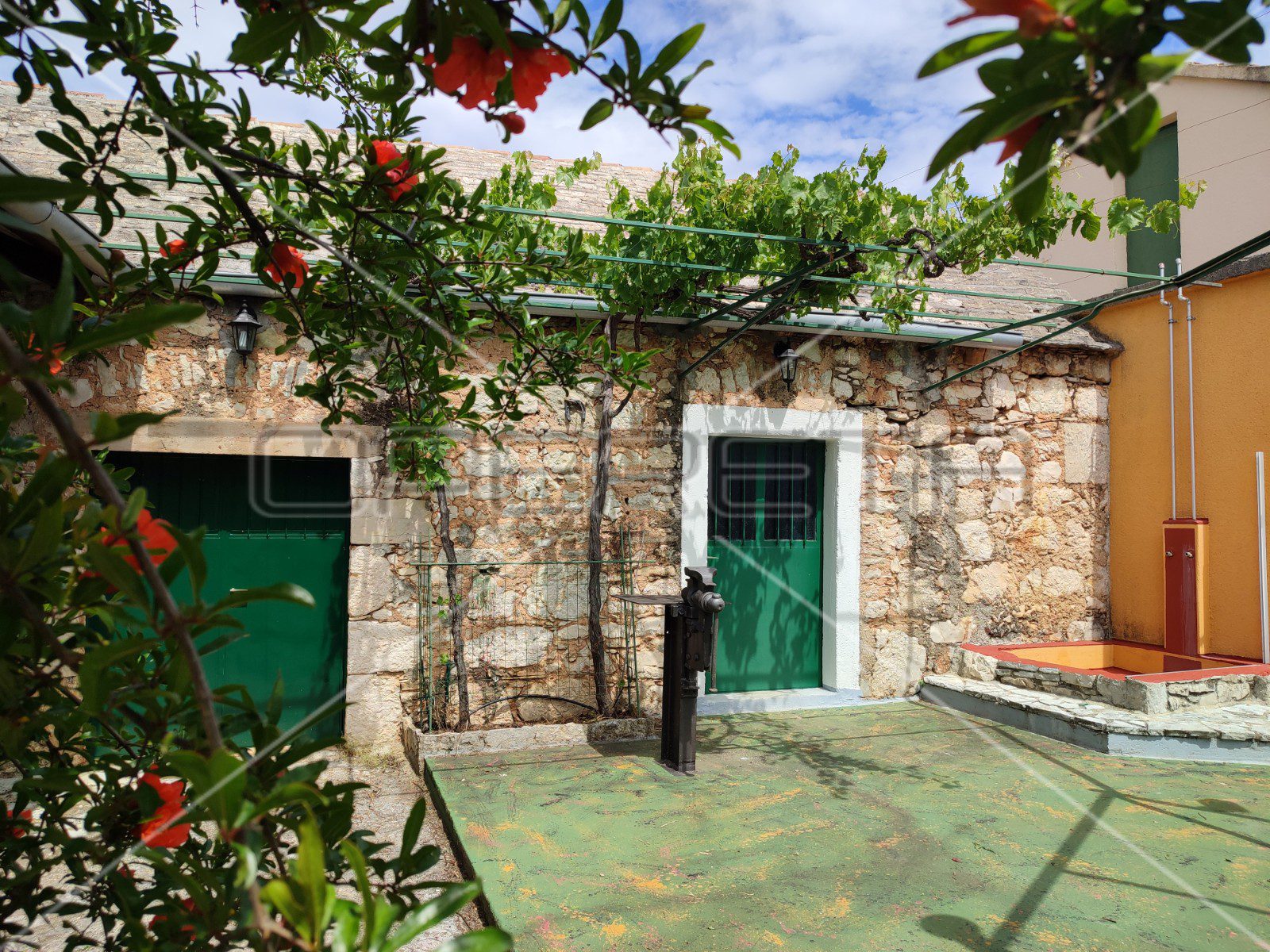 Ono što posebno krasi ovo imanje svakako je južno ograđeno dvorište koje je idealno za uživanje i odmor u ljetnim danima s obzirom da je zaklonjeno sjenicom od divlje loze.
