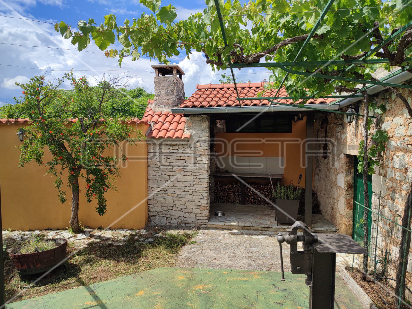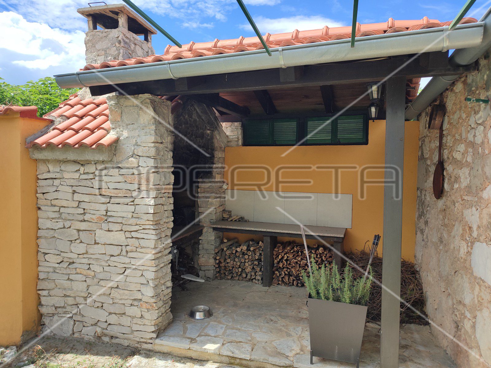 U sklopu imanja nalazi se kameni kamin s natkrivenim pretprostorom i prostorom za drva.