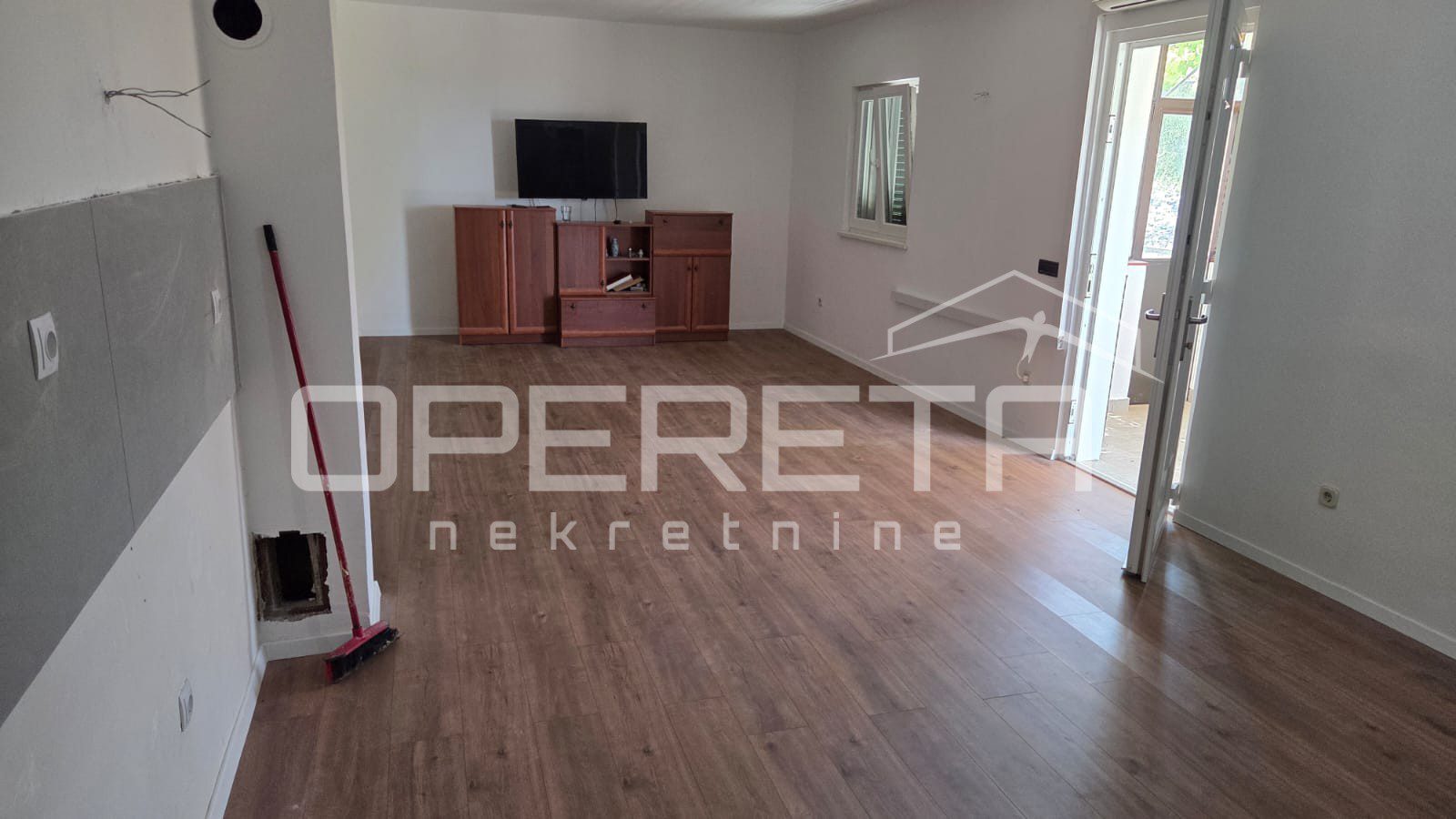 Sastoji od ulaznog pretprostora, velike prostorije s kuhinjom i dnevnim boravkom ukupne površine 36 m2, hodnika, dvije spavaće sobe i kupaonice s wc-om.