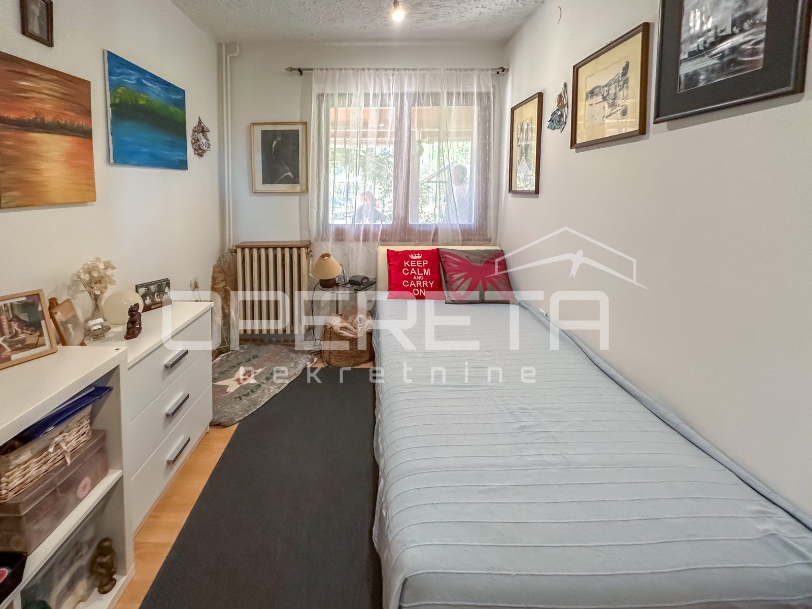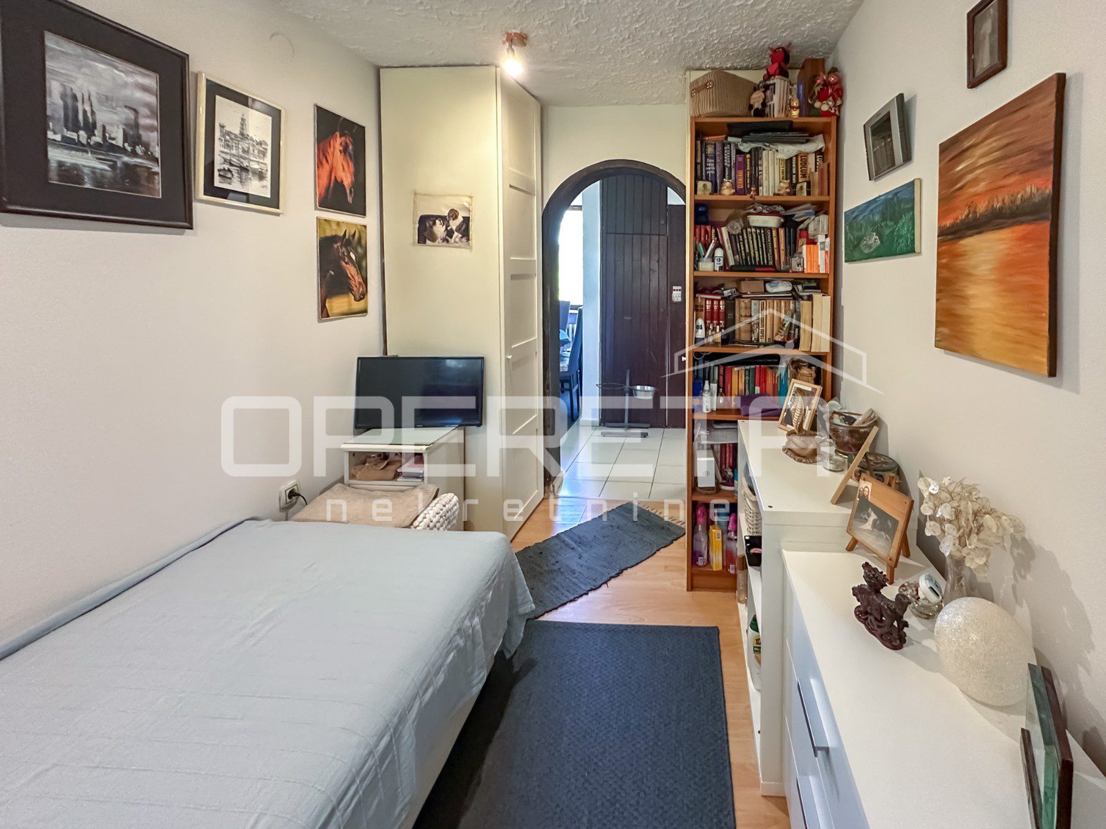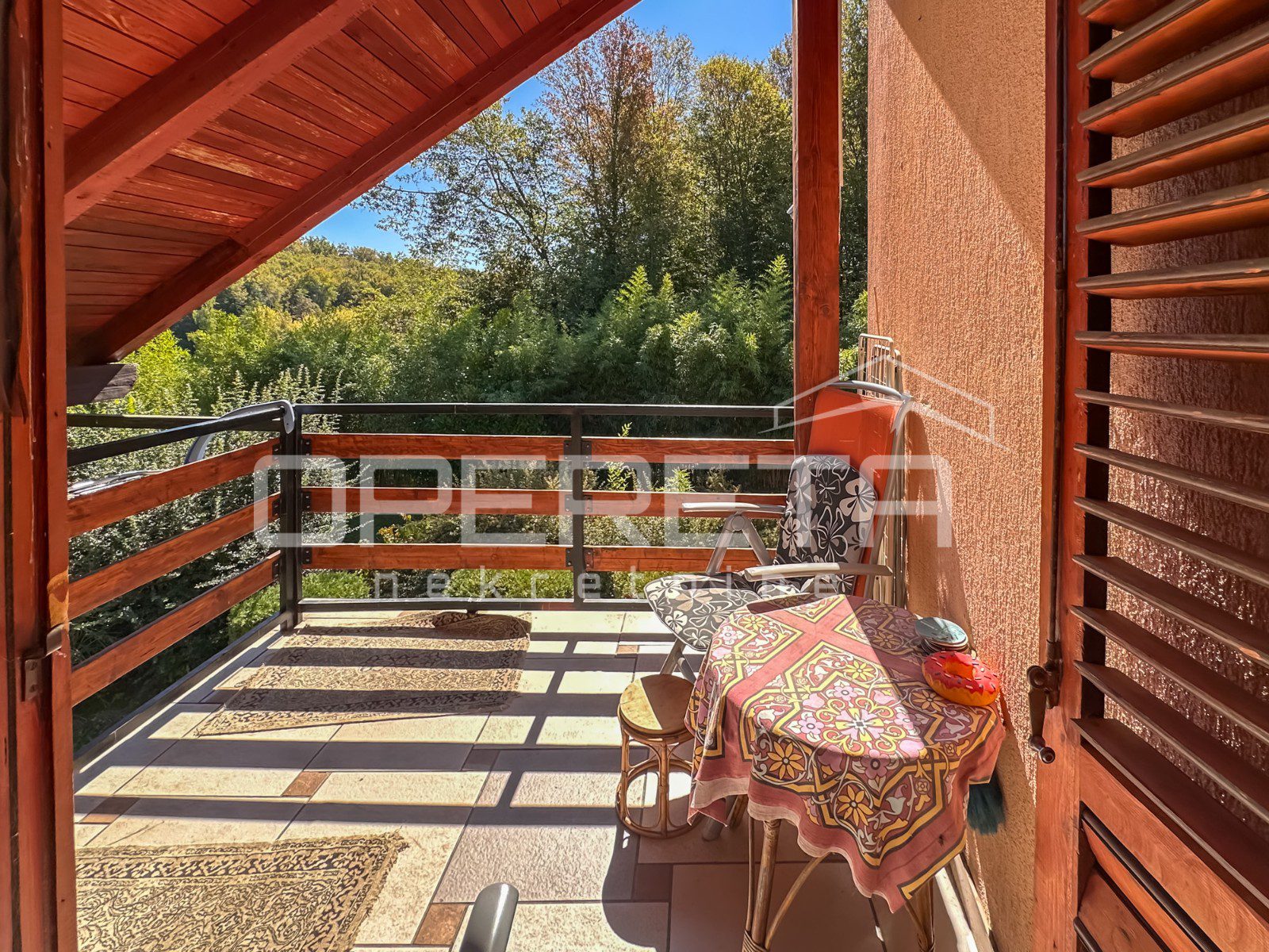 Na katu se nalazi prostrana spavaća soba, dodatni kutak uređen kao radni prostor te garderoba smještena u ugradbeni ormar. Velika kupaonica s krovnim prozorima pruža osjećaj prostranosti i svjetlosti, a s kata se izlazi i na balkon.