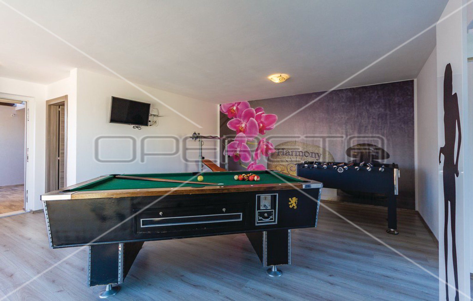 Na uređenoj okućnici nalazi se pomoćni objekt opremljen vanjskim šankom i kaminom dok se u unutrašnjosti samog objekta nalazi igraonica opremljena stolnim nogometom, bilijarskim stolom, tv – om i toalet.