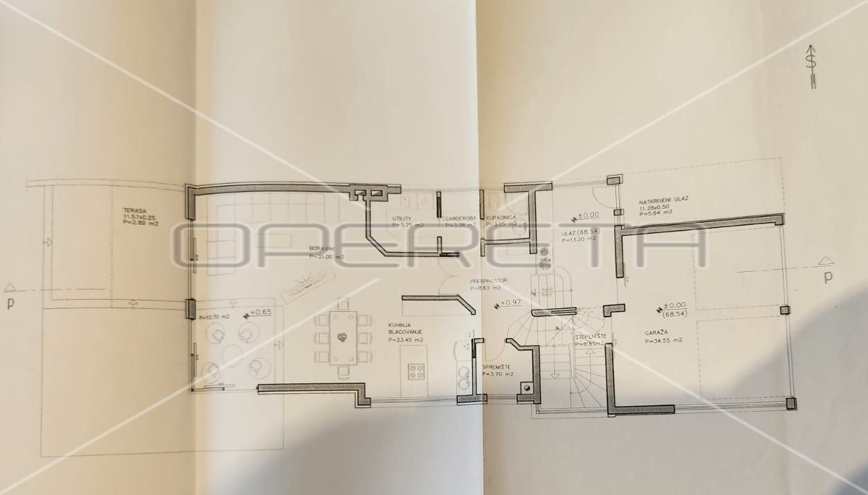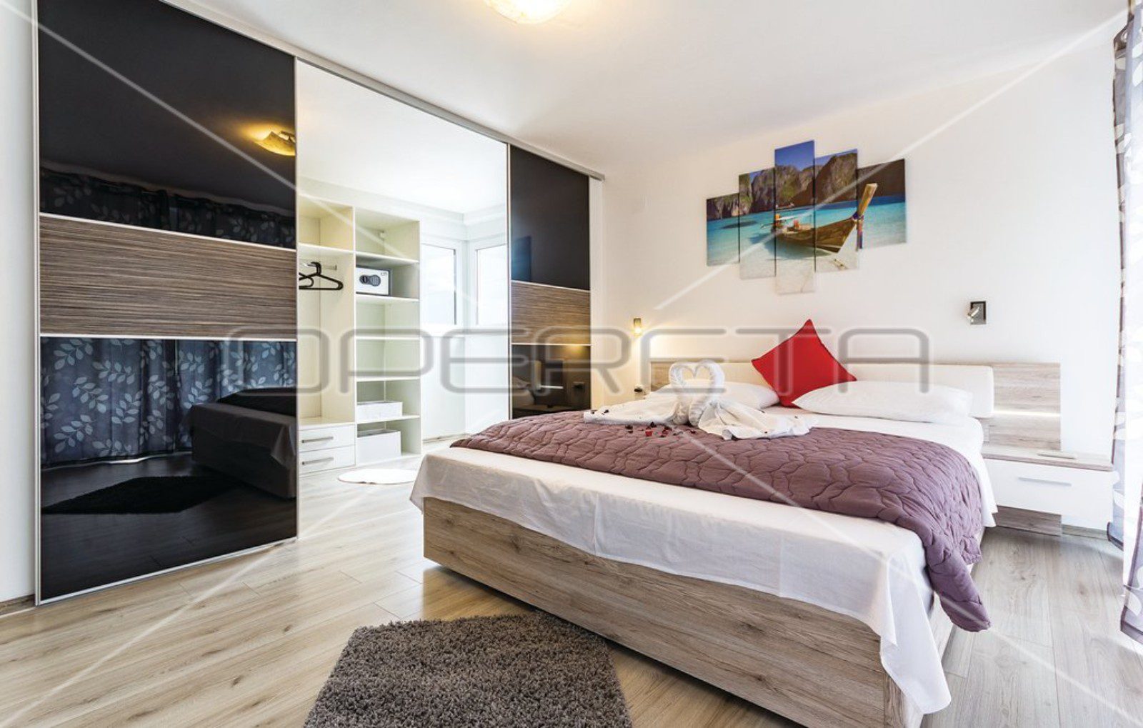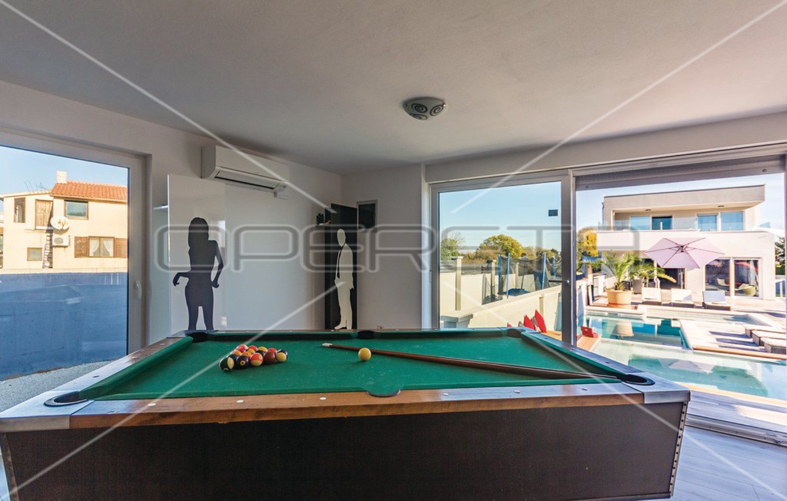 Nekretnina je modernog dizajna i izgrađena te je u potpunosti opremljena vrhunskim materijalima i modernim detaljima (pomični zid 360 stupnjeva sa tv-om u dnevnom boravku.)