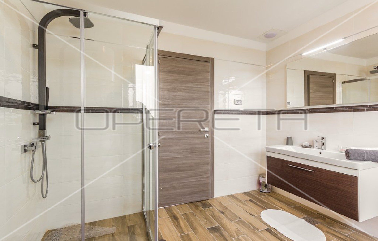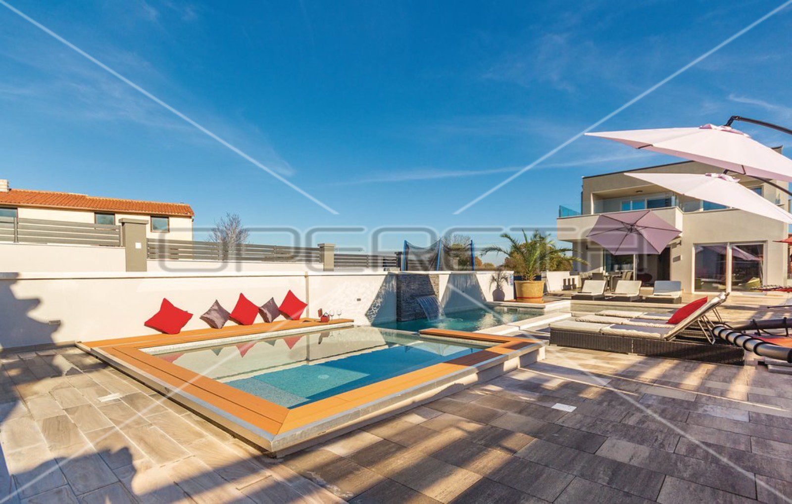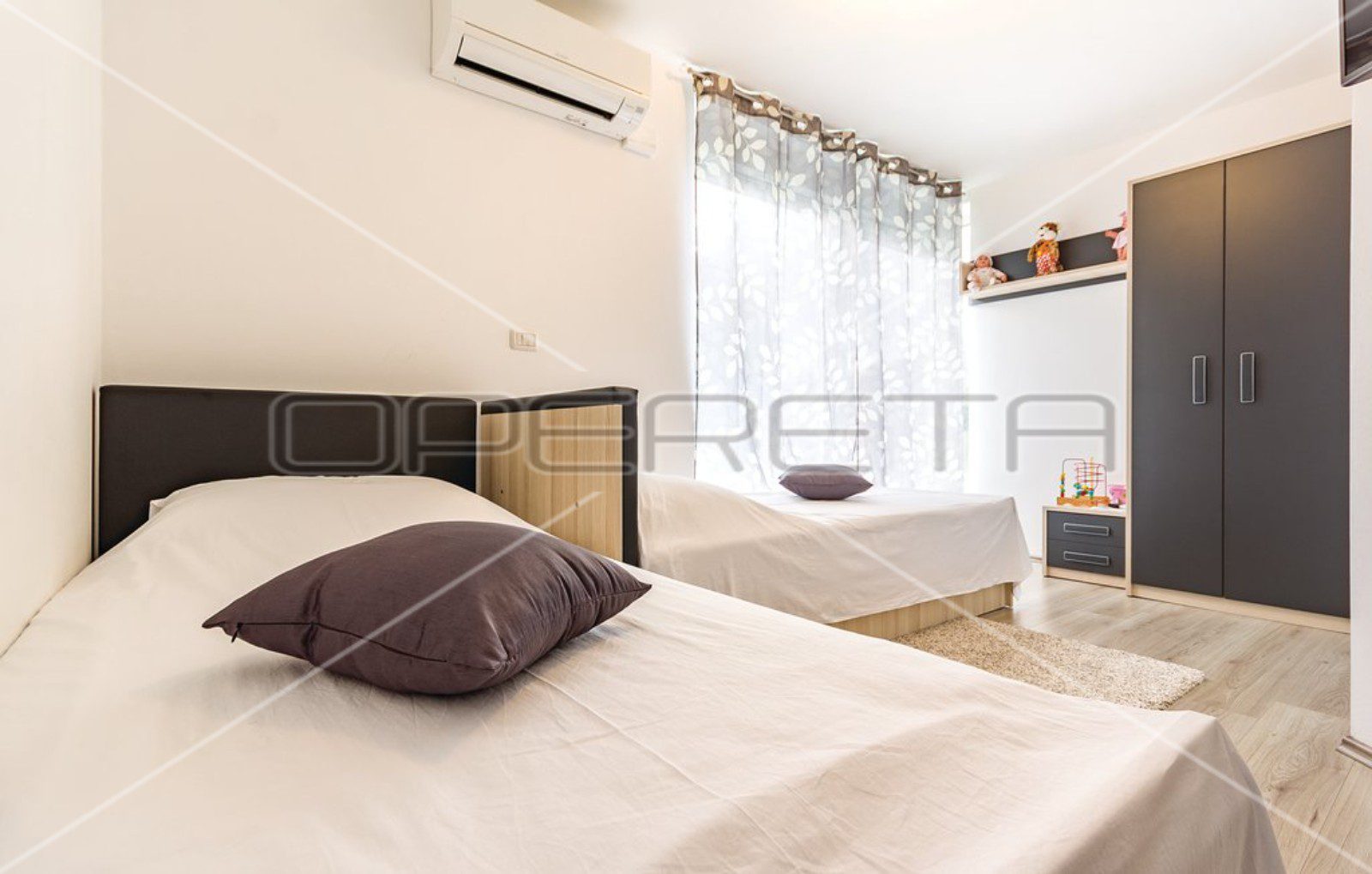 Nekretnina je modernog dizajna i izgrađena te je u potpunosti opremljena vrhunskim materijalima i modernim detaljima (pomični zid 360 stupnjeva sa tv-om u dnevnom boravku.)