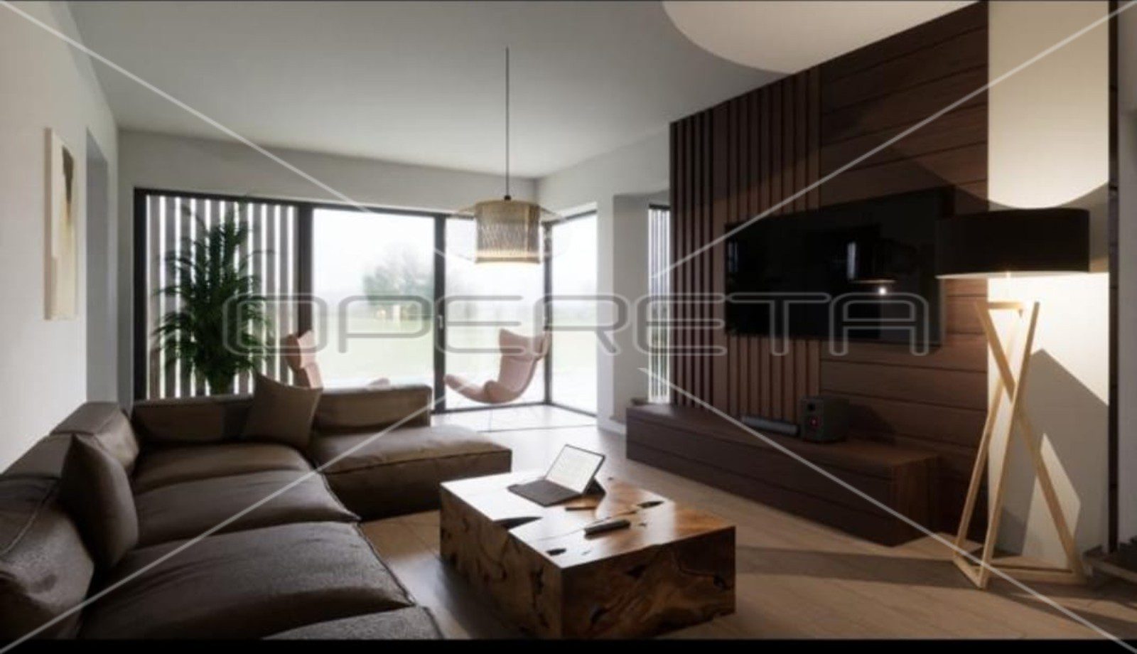 Kuća se proteže kroz dvije etaže, gdje je prizemna etaža zamišljena kao dnevni dio, tj. dnevni boravak, kuhinja s blagovaonicom, teretana sa saunom i kupaonicom, dodatni toalet i praonica/ostava. Na gornjoj etaži smještene su četiri spavaće sobe, tri kupaonice i prostrani natkriveni balkon od 30 m2 koji nudi zadivljujuće poglede.