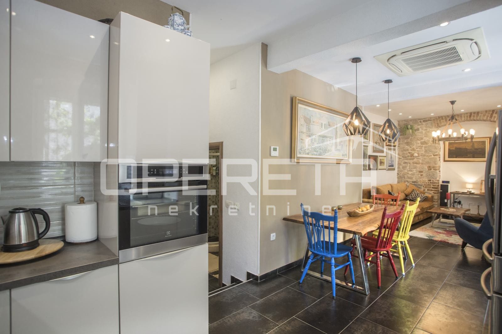 Na atraktivnoj lokaciji, svega 5 minuta hoda od Rive i isto toliko do poznate plaže Bačvice, nalazi se ova prekrasna kamena kuća površine 180 m², koja se proteže na tri etaže i sastoji se od pet odvojenih jedinica.