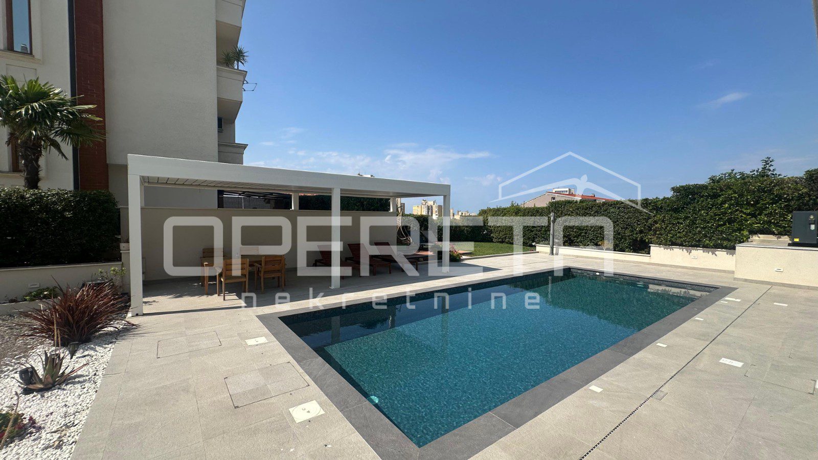 Elegantni bazen sa sunčalištem, vrtna zona s pergolom i parkiralište za sedam vozila čine vanjski prostor izuzetno funkcionalnim i ugodnim za boravak.