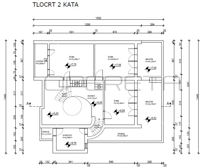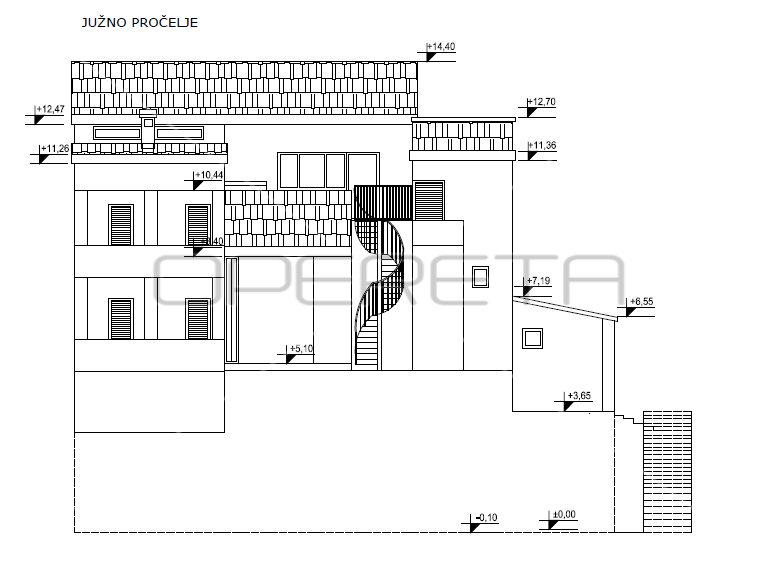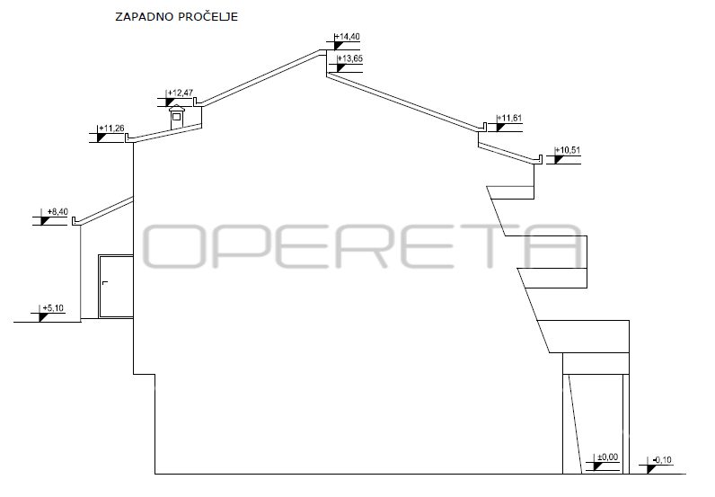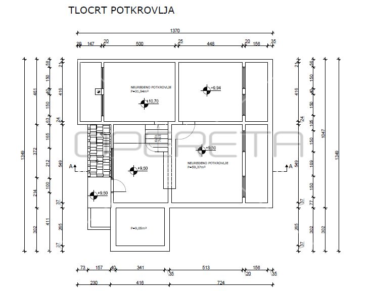 Četvrta etaža, trenutno odvojena vanjskim spiralnim stepenicama, u visokom je roh bau, površine 110m2.