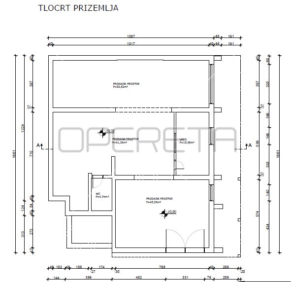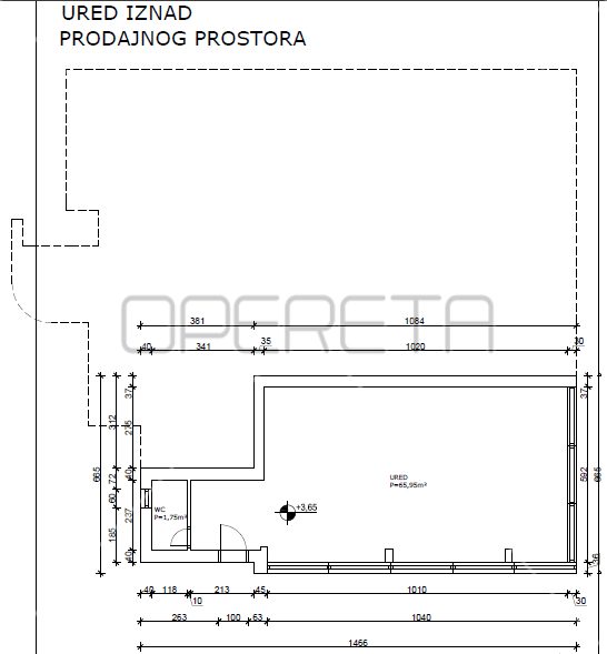 Poslovni dio površine 289m2 dijeli se na 2 etaže: