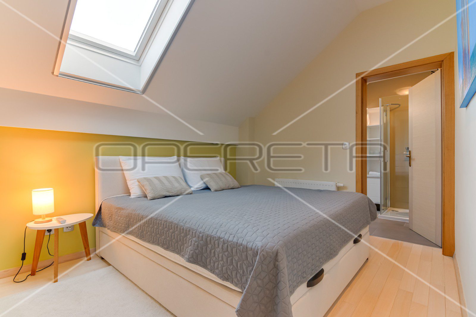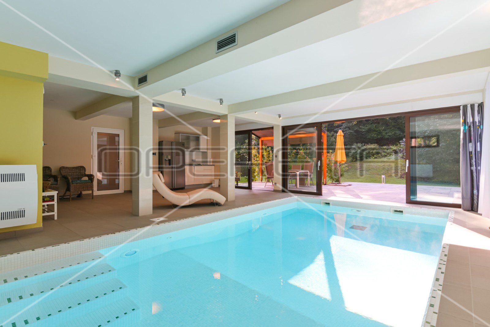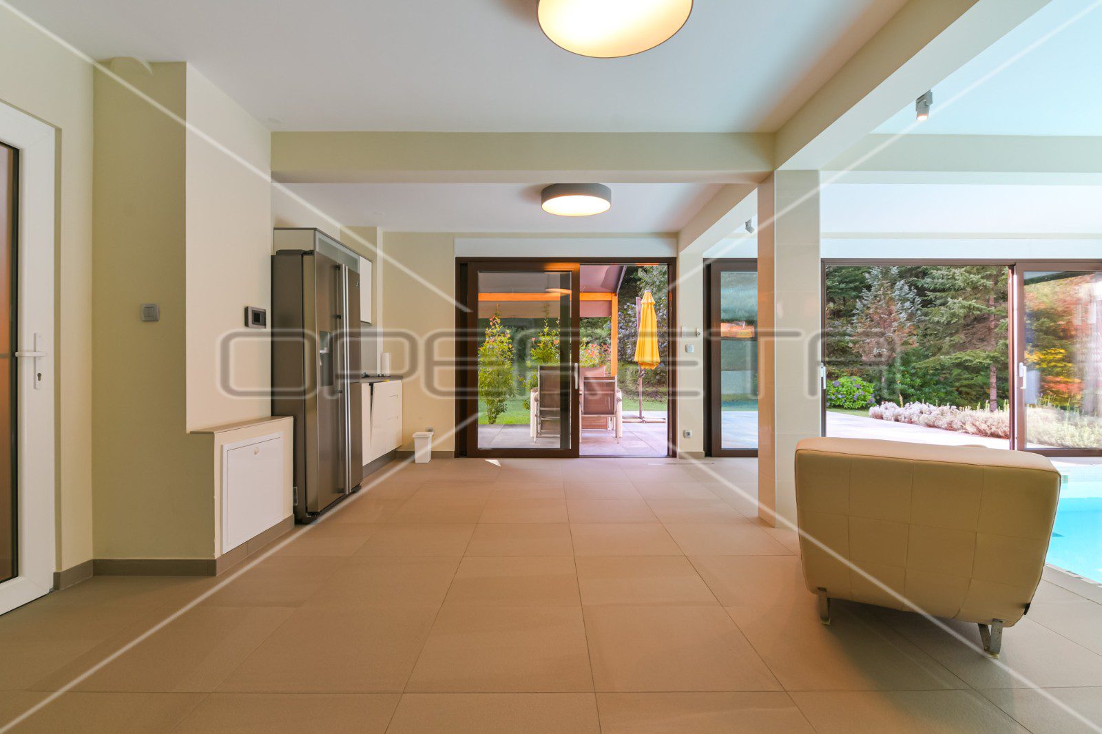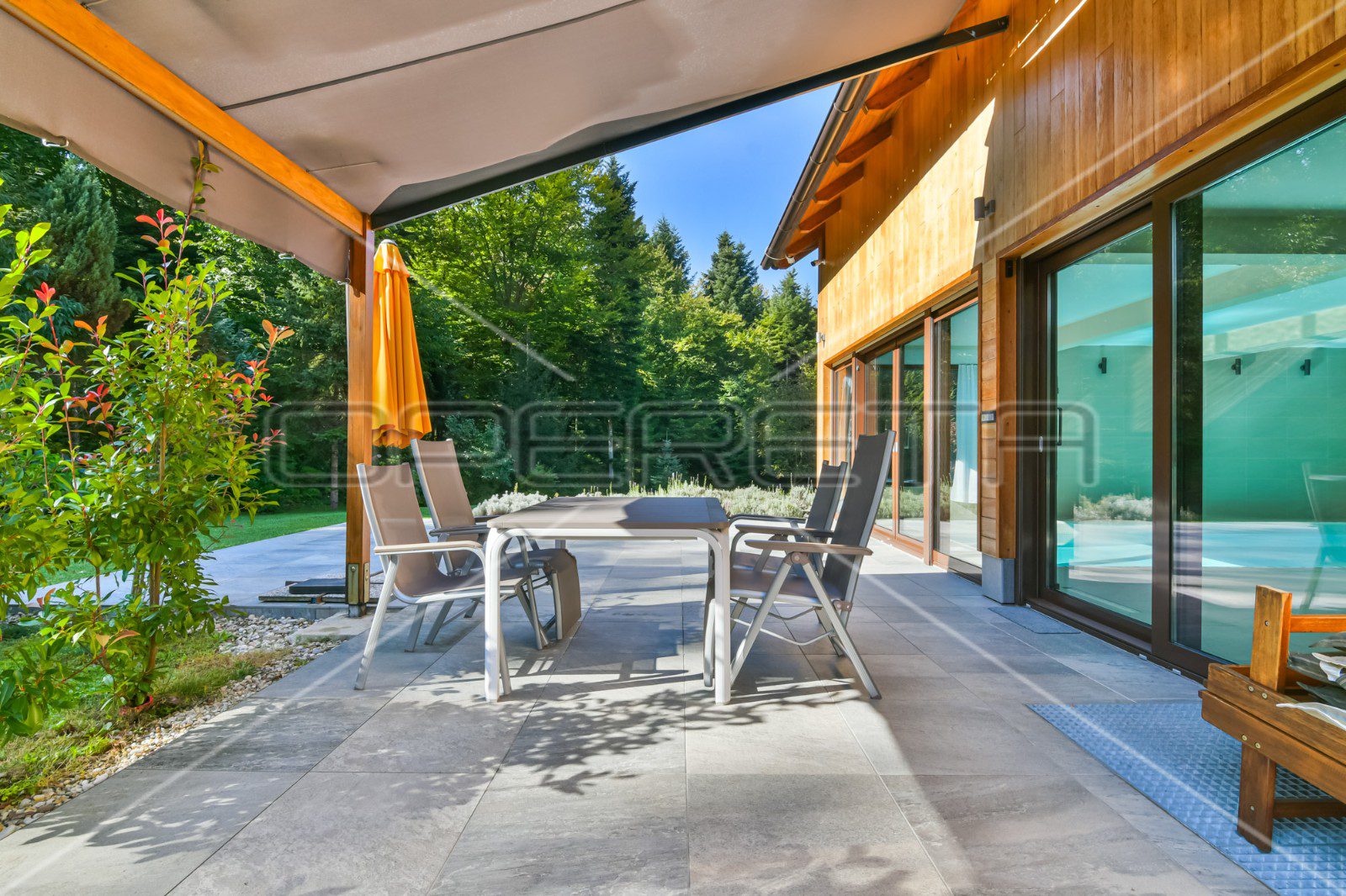 Moderna samostojeća vila od 264 m2 luksuznog interijera smještena na skrovitoj zelenoj oazi od 2130 m2. Razvedena je u tri etaže. U podrumskom prostoru nalazi se teretana, radna prostorija, hodnik i prostor tehnike bazena. Prizemljem prevladava bazen ( vrhunske izvedbe s protustrujnim plivanjem, slana voda) sa prostorom za opuštanje koji je putem kliznih stijena i vanjskih terasa u direktnom kontaktu s prirodom i šumovitim okruženjem, te wc + tuš i mini kuhinja. Na katu se nalaze 2 spavaće sobe s vlastitim kupaonicama te “open space” dnevni boravak s kuhinjom i blagovaonicom. Vrhunski namještaj i oprema uključujući alarm, video-nadzor, rolete na daljinsko upravljanje, auto-zatvaranje krovnih prozora u slučaju kiše itd.. Vila je armirano-betonske konstrukcije obložena drvetom ( hrast ) koji i obilježava okruženje u kojem se nalazi. 2 pomoćna objekta: garaža i spremište te parking. Idealna planinska mikroklima. Vila je kategorizirana s 4* i ima izvrsnu i konstantnu popunjenost. Prodaje se potpuno namještena i spremna za nastavak iznajmljivanja. Besprijekoran luksuz i odmor u čistoj prirodi!