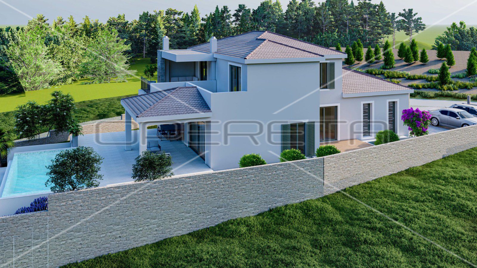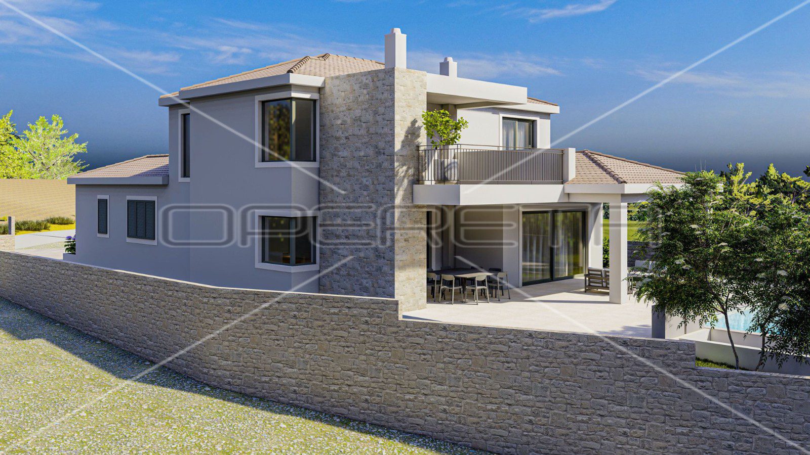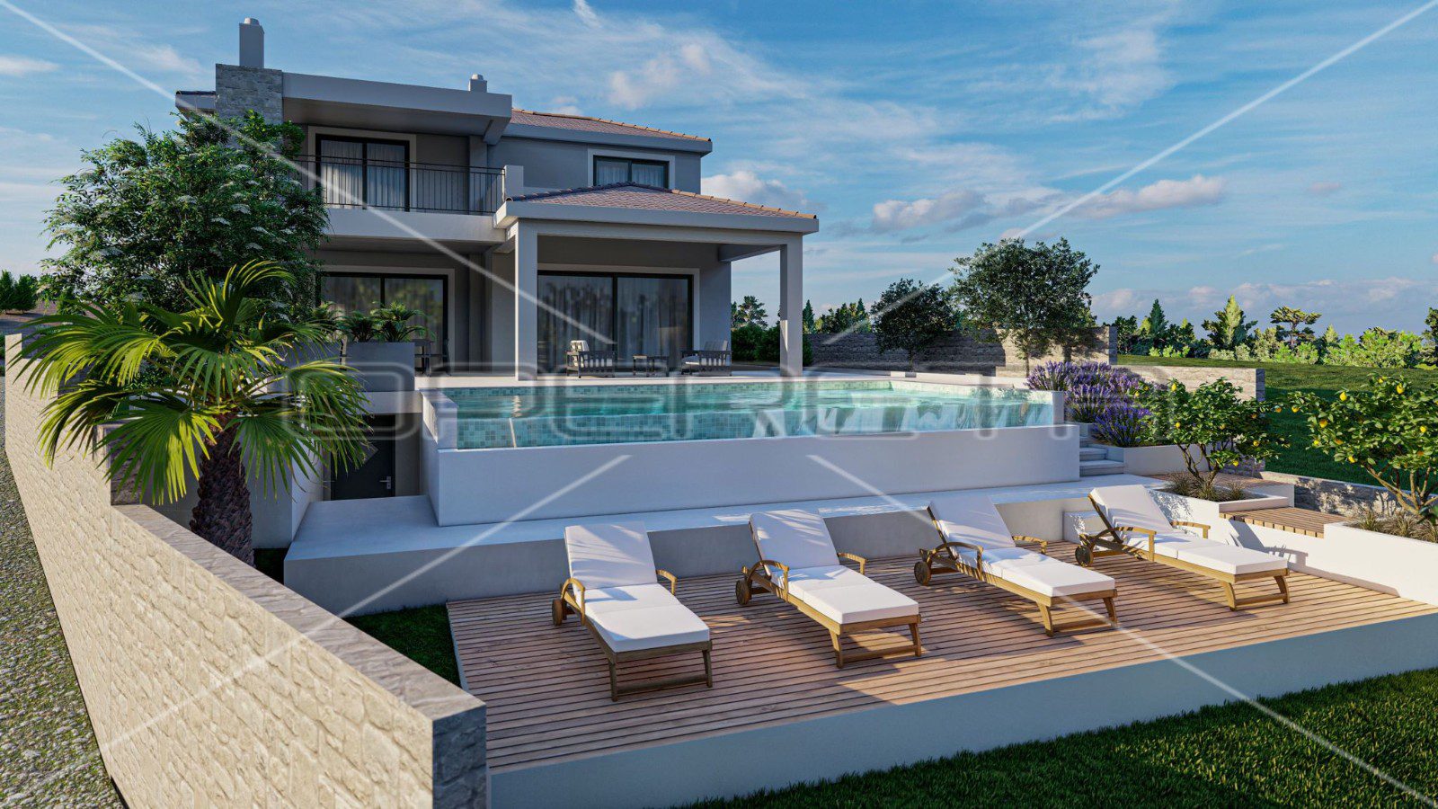Ova impozantna vila, površine 298 m², pažljivo je osmišljena kako bi pružila luksuzan i opuštajući životni prostor. Glavni aduti uključuju moderni infinity bazen s pogledom na more, idealan za uživanje u mediteranskoj klimi, te izdvojeni podrum koji može poslužiti kao vinski podrum.