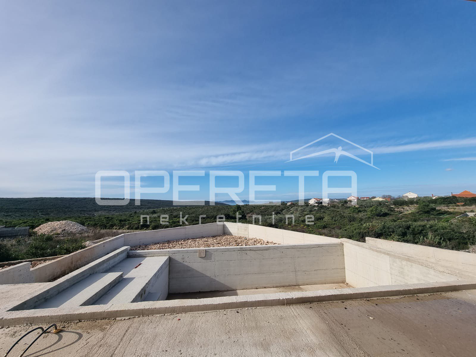 Trenutno je objekt u visokom roh-bau stupnju izgrađenosti, na gotovim i pripremljenim temeljima, izvana potpuno završen fasadom i zatvoren kvalitetnom aluminijskom stolarijom. Unutrašnjost je instalacijski i građevinski potpuno pripremljena — zidovi su obloženi gipsom, gletani i obojani, plafoni žbukani i obrađeni, dok su podovi pripremljeni za završne podne obloge, omogućujući kupcu fleksibilnost u odabiru završnog uređenja prema osobnim preferencijama.