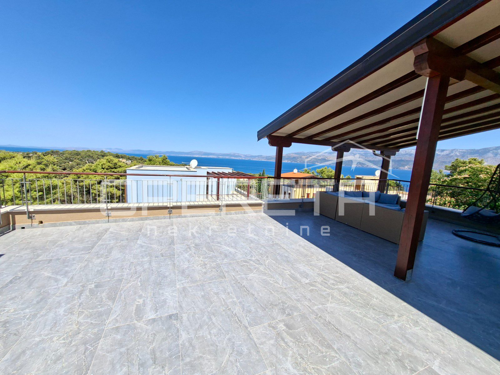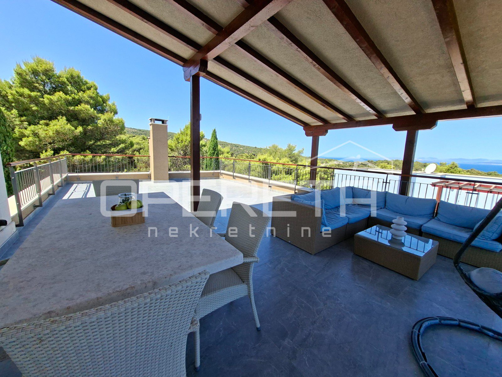 U mirnom mjestu Splitska na otoku Braču, okružena manjim vilama i mediteranskim zelenilom, smjestila se moderna kuća stambene površine 170 m² na parceli od 373 m².