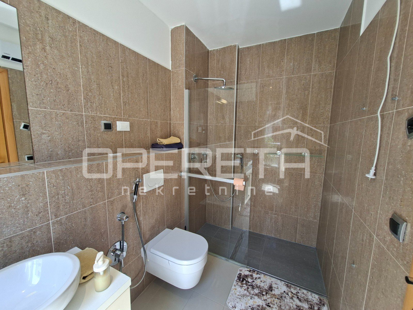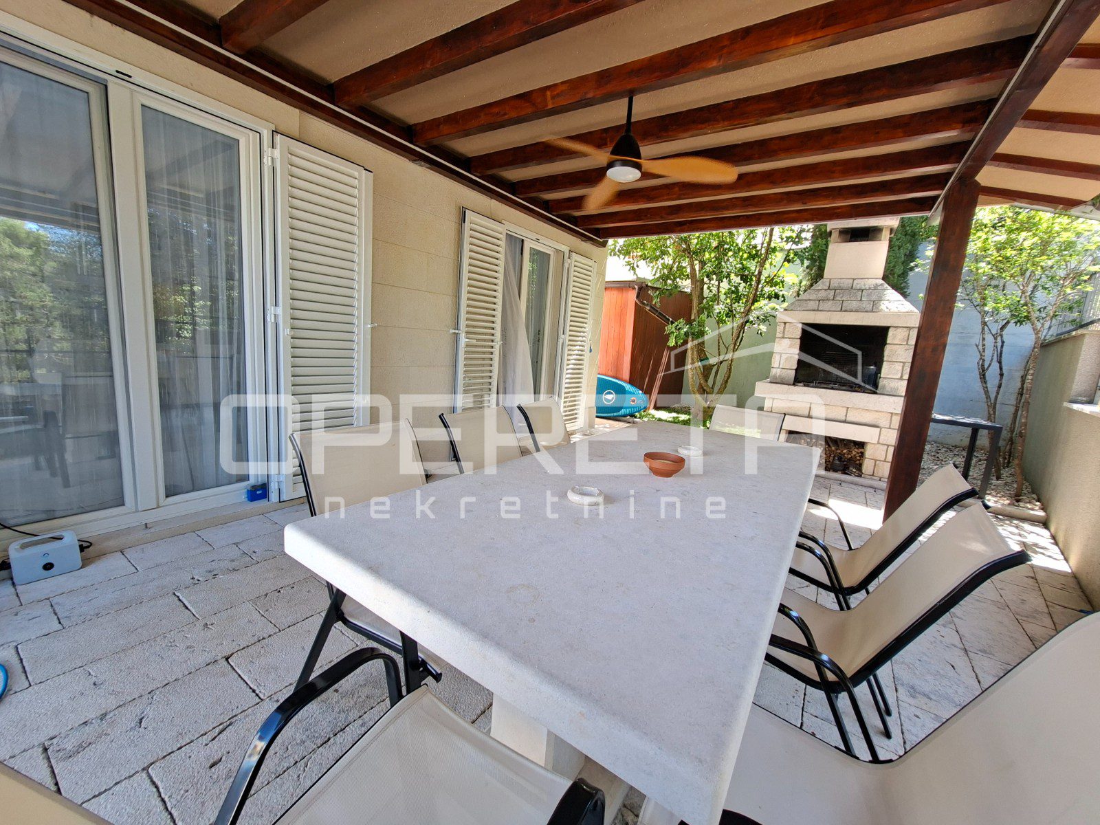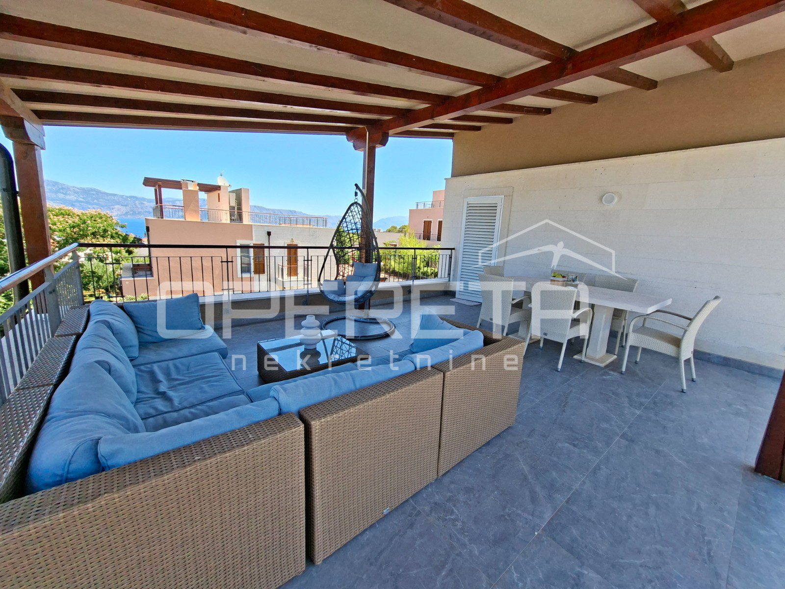 Treća etaža uređena je kao prostrana terasa s pergolom i blagovaonicom na otvorenom, s koje se pruža prekrasan pogled na cijeli zaljev, obližnja naselja i more.