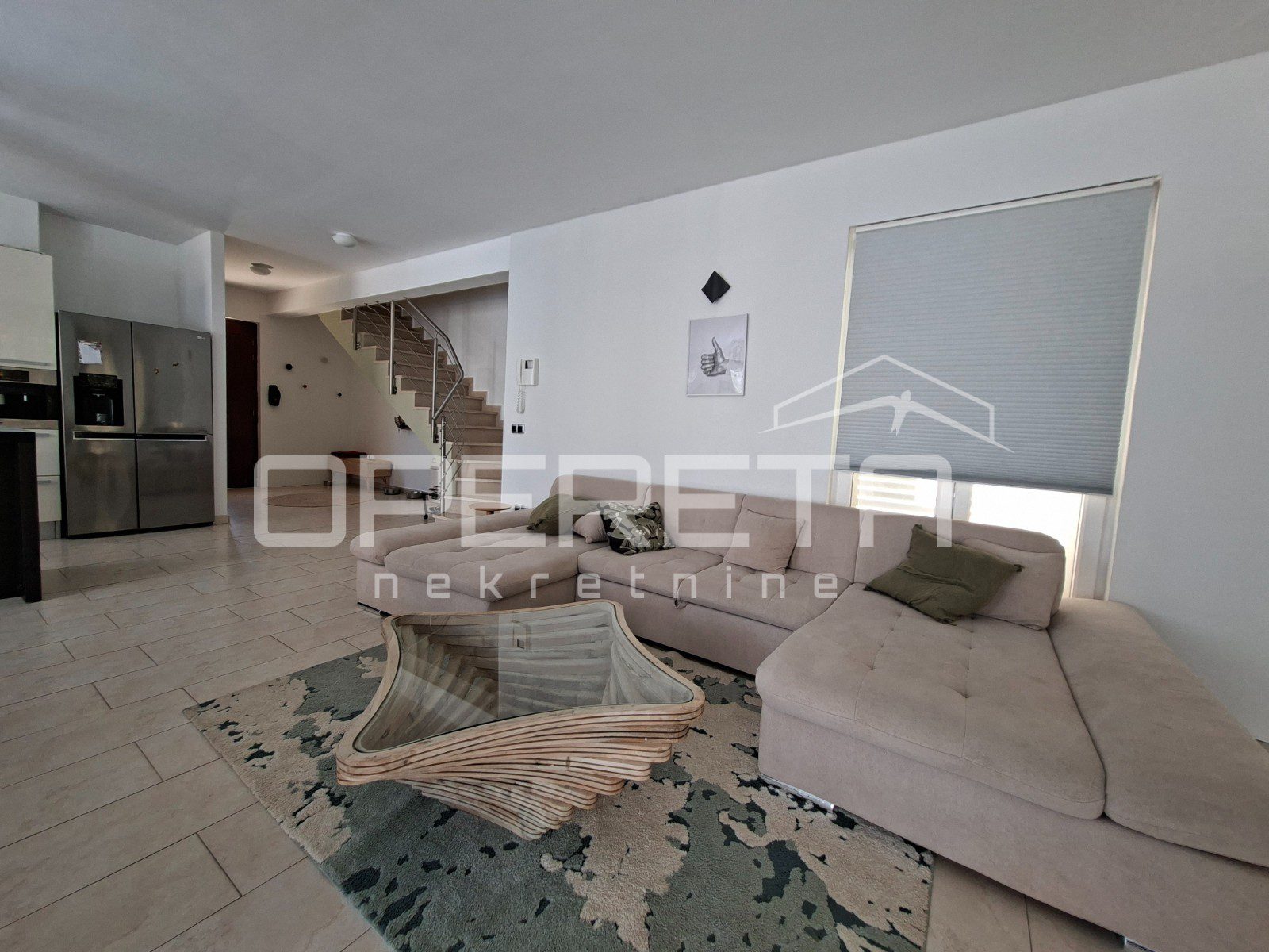 Kuća se prostire na tri etaže, s tlocrtom od 85 m² po etaži. U prizemlju se nalazi prostrani dnevni boravak s potpuno opremljenom kuhinjom i blagovaonicom, WC te ostava.