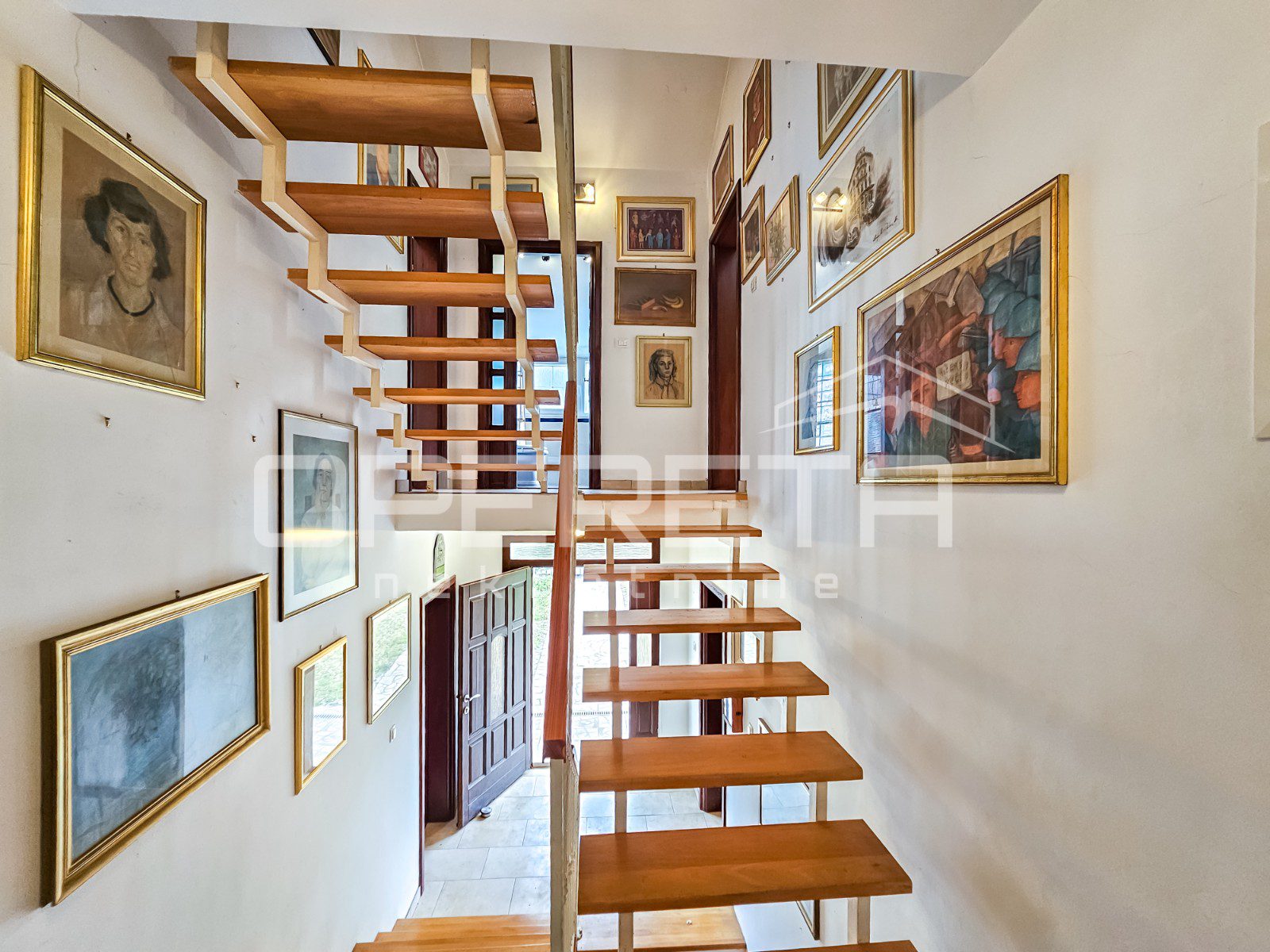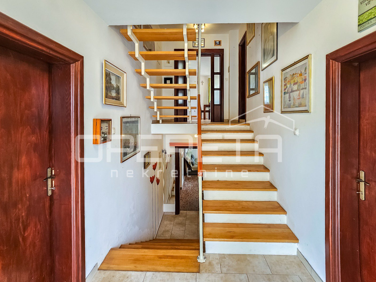 Kuća je građena prilagođeno blagom padu terena, čime su stvorene ugodne međuetaže koje prostoru daju dodatnu dinamiku i poseban šarm.