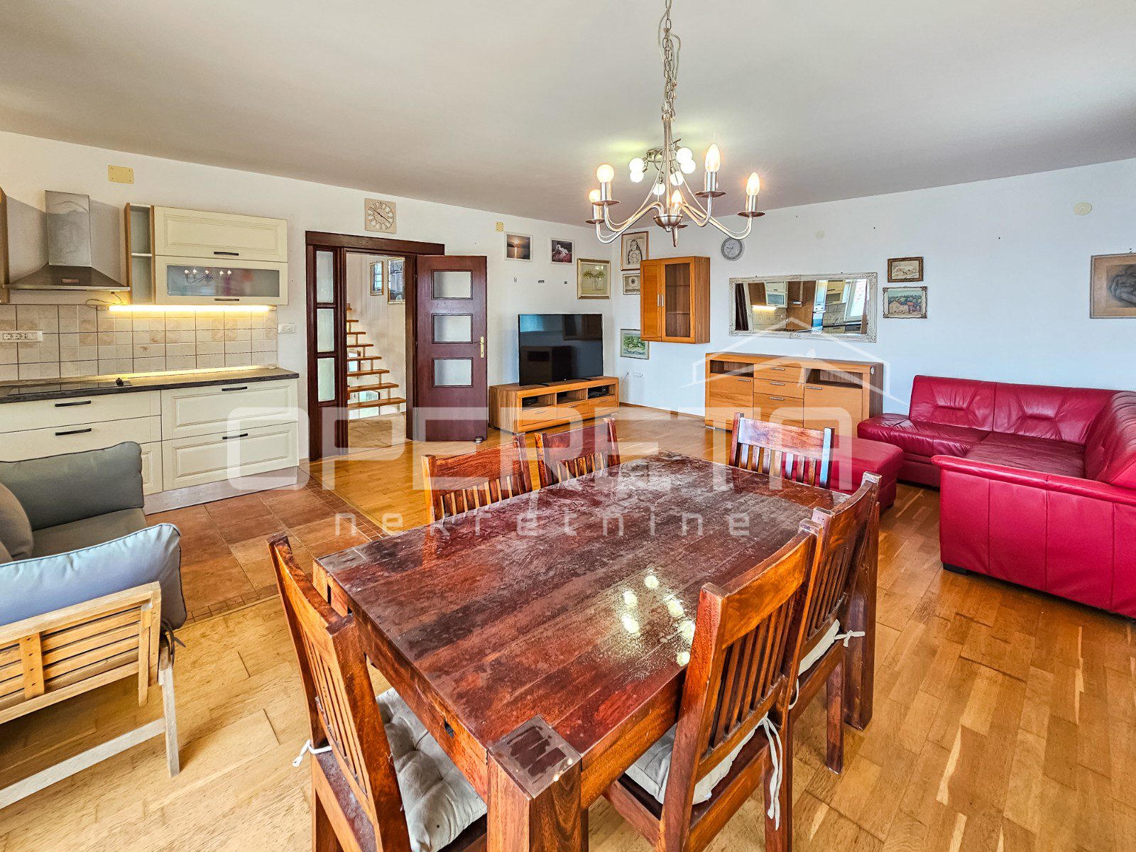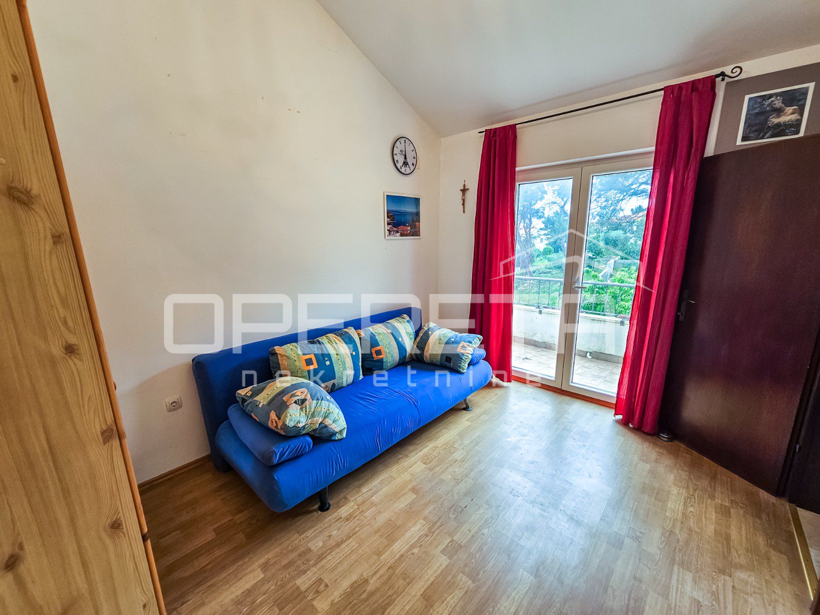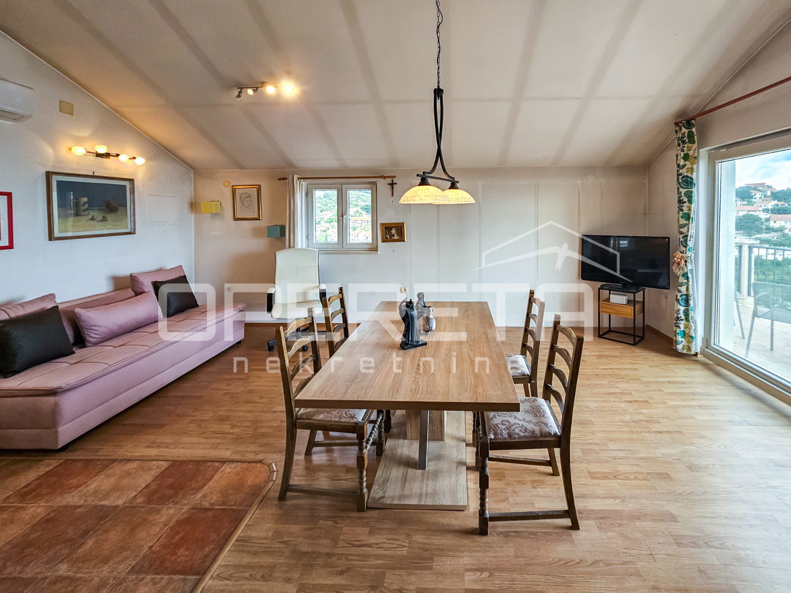 Ono što ovu etažu čini posebno čarobnom je kaminska peć na drva i ugrađeni dimnjak, stvarajući osjećaj topline i ugode tijekom zimskih mjeseci, dok istovremeno s terase pruža nezaboravan pogled na plavetnilo Jadranskog mora.