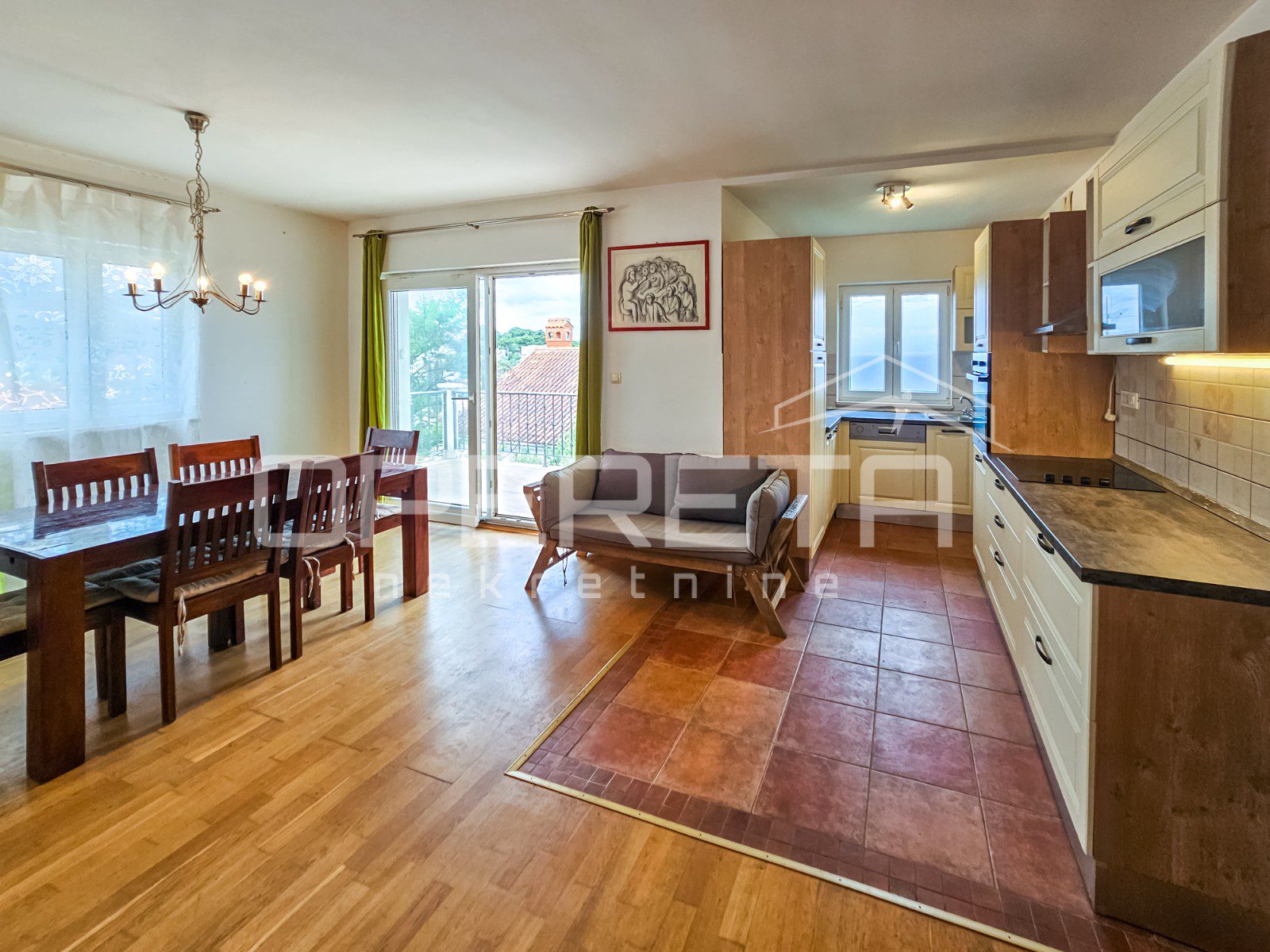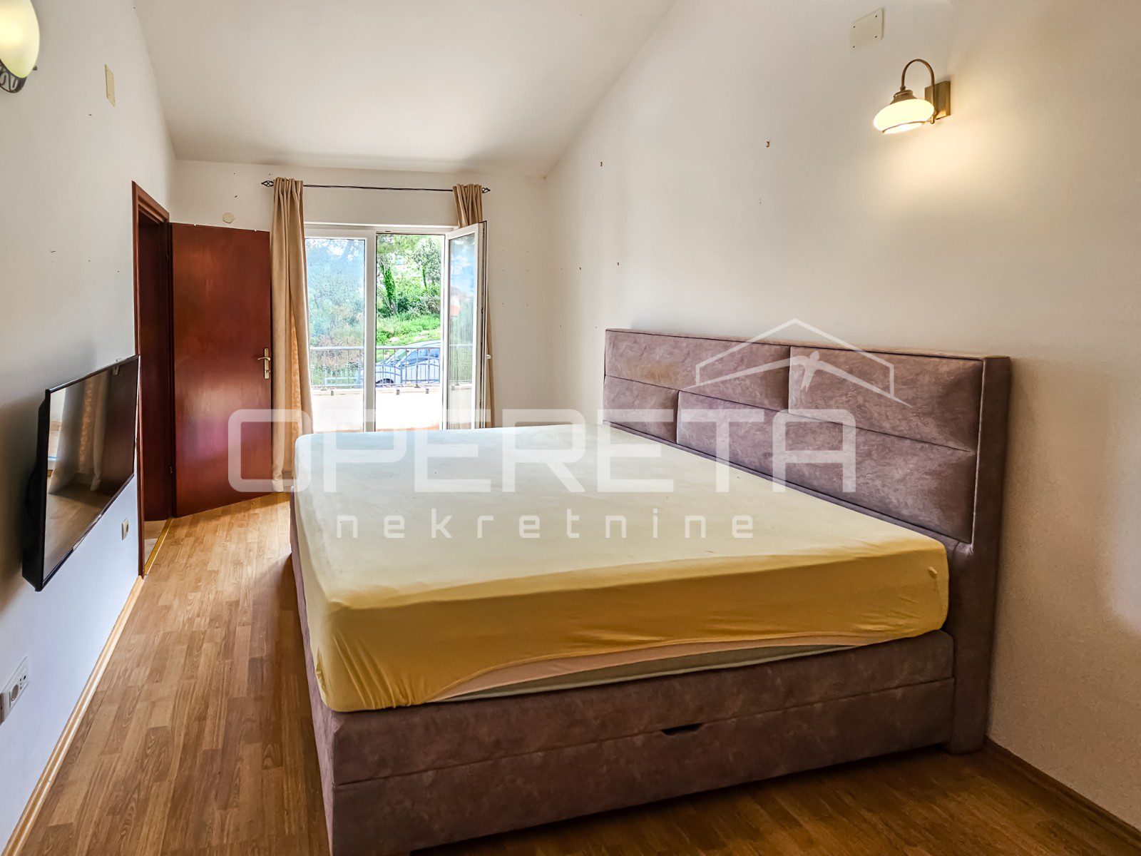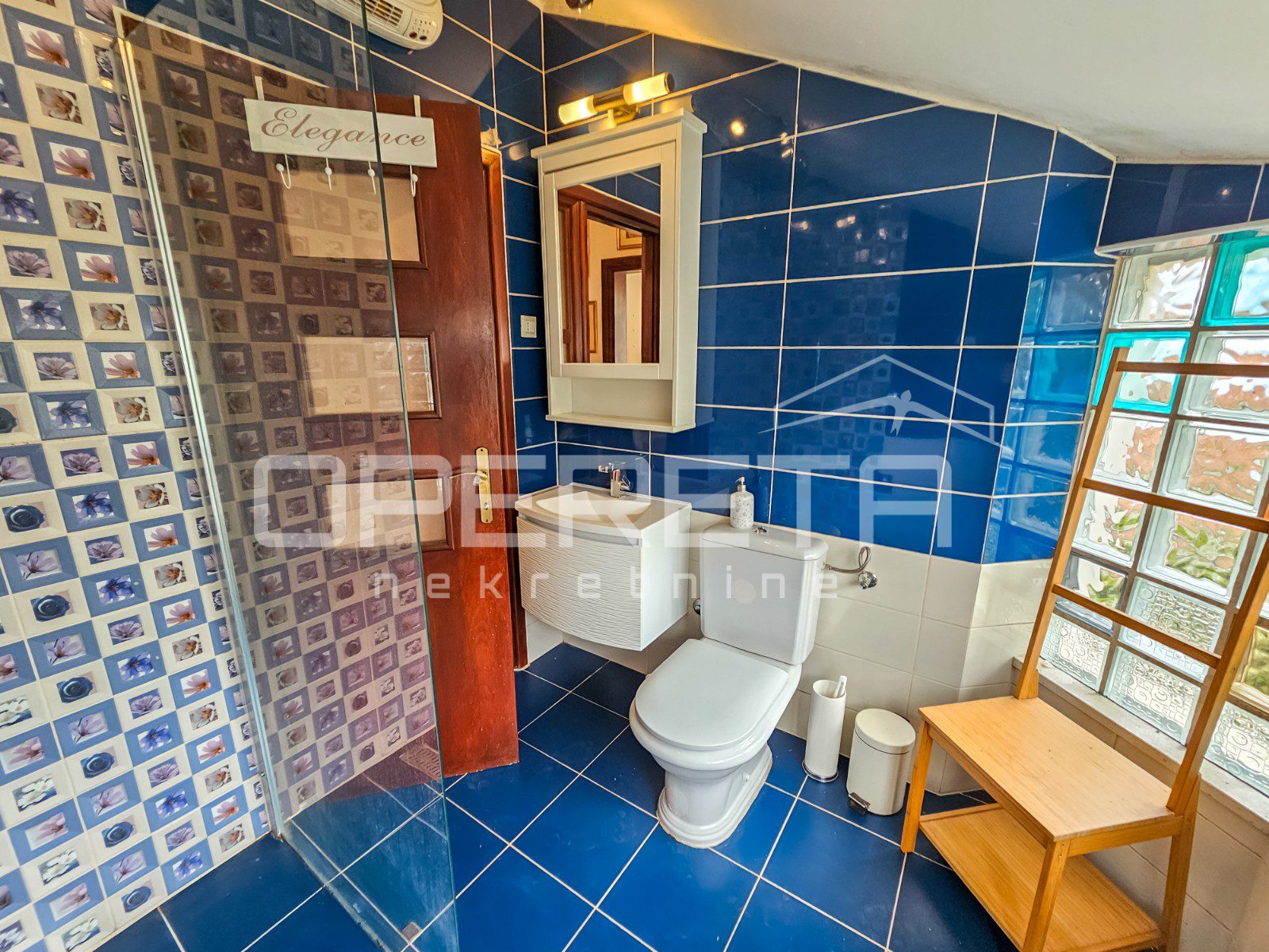 Ono što ovu etažu čini posebno čarobnom je kaminska peć na drva i ugrađeni dimnjak, stvarajući osjećaj topline i ugode tijekom zimskih mjeseci, dok istovremeno s terase pruža nezaboravan pogled na plavetnilo Jadranskog mora.