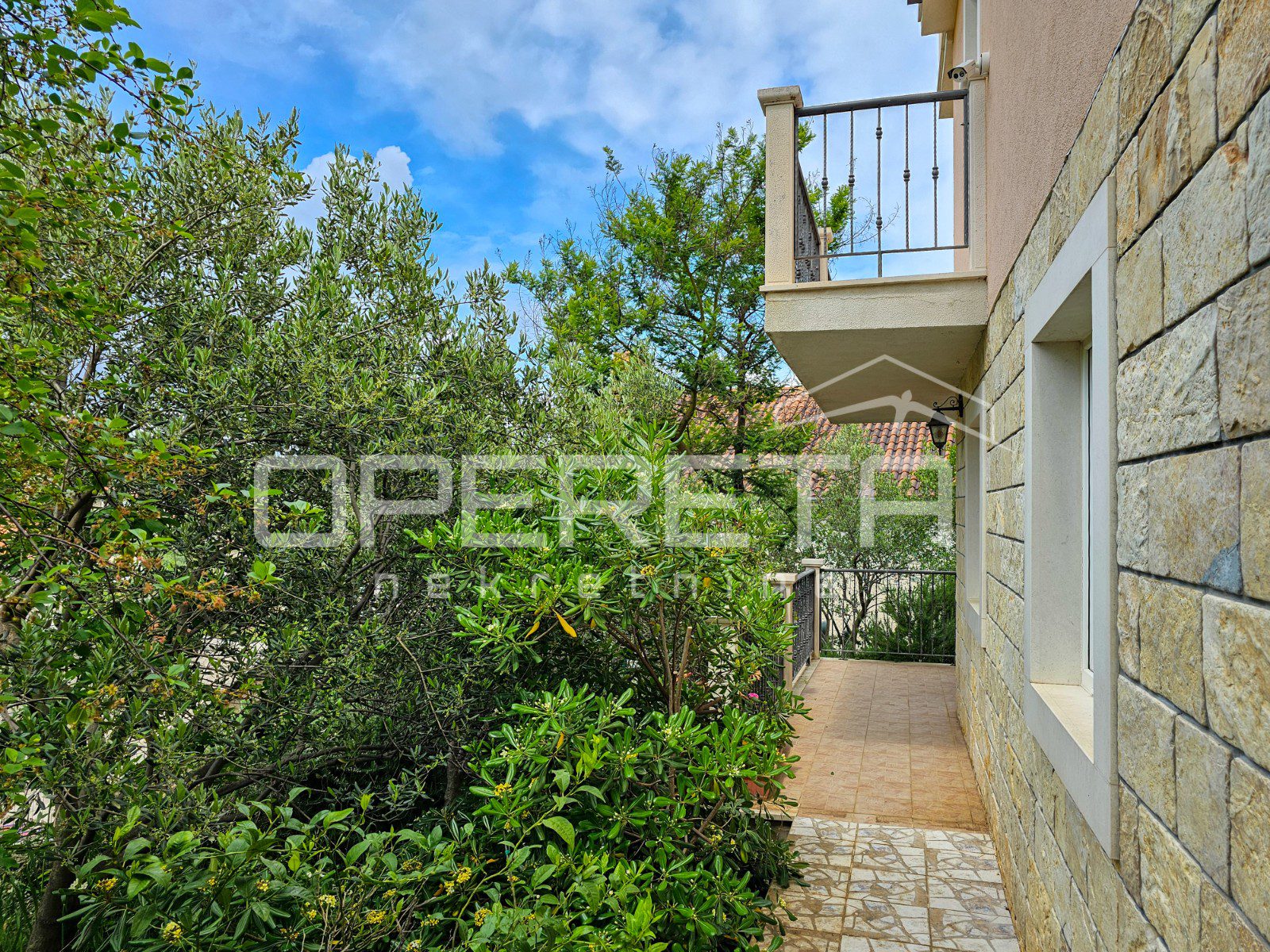 Smještena na parceli od 404 m², kuća obuhvaća ukupno 185 m² neto stambene površine. Okružena je raskošnim zelenilom vlastitog vrta u kojem raste šipak, smokva, limun, naranča, maslina, oleandri i aromatično mediteransko bilje poput ružmarina i kadulje te ostalo ukrasno bilje. Hortikulturno uređeni vrt s automatskim navodnjavanjem stvara dojam vlastite oaze mira.