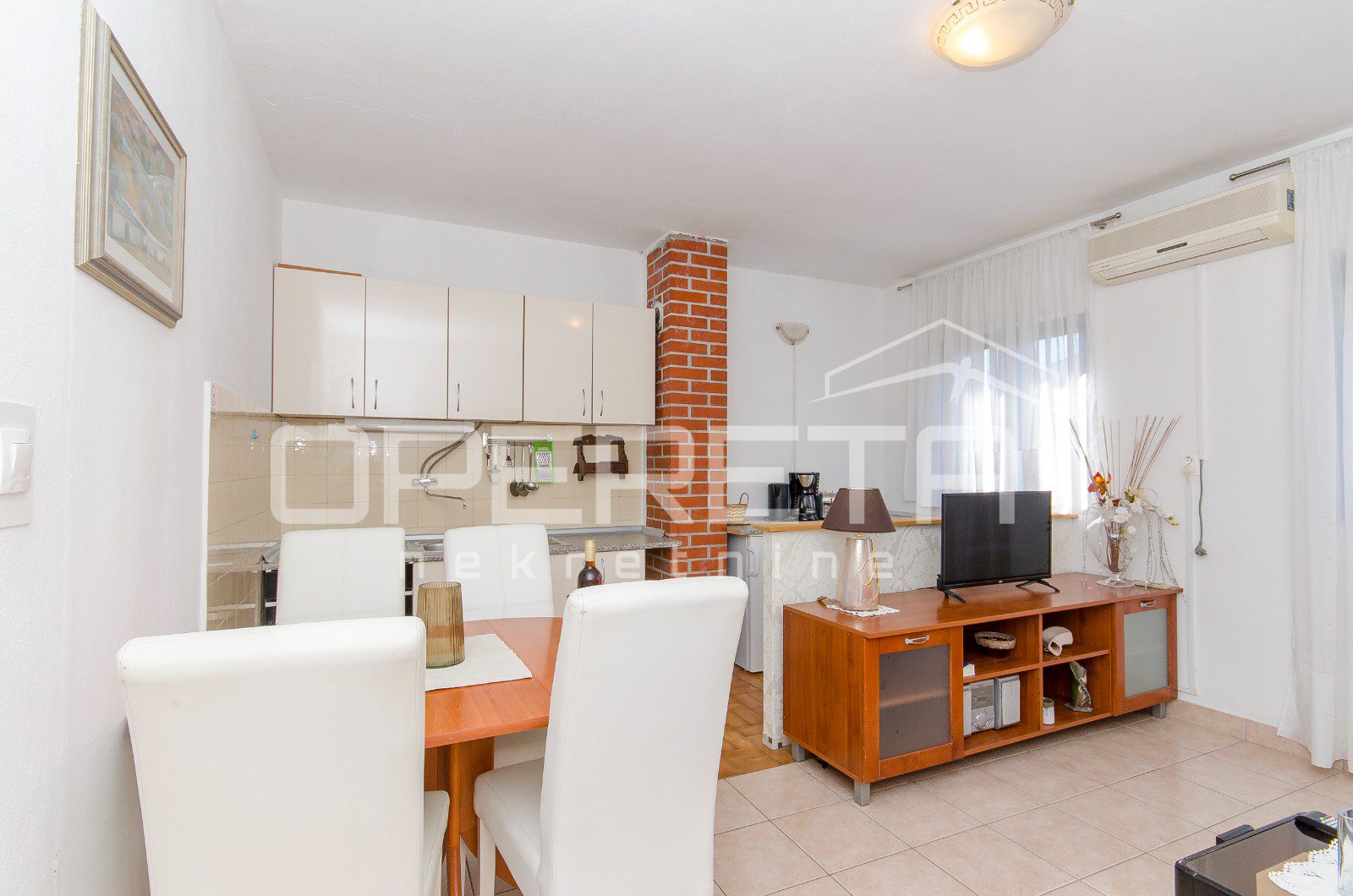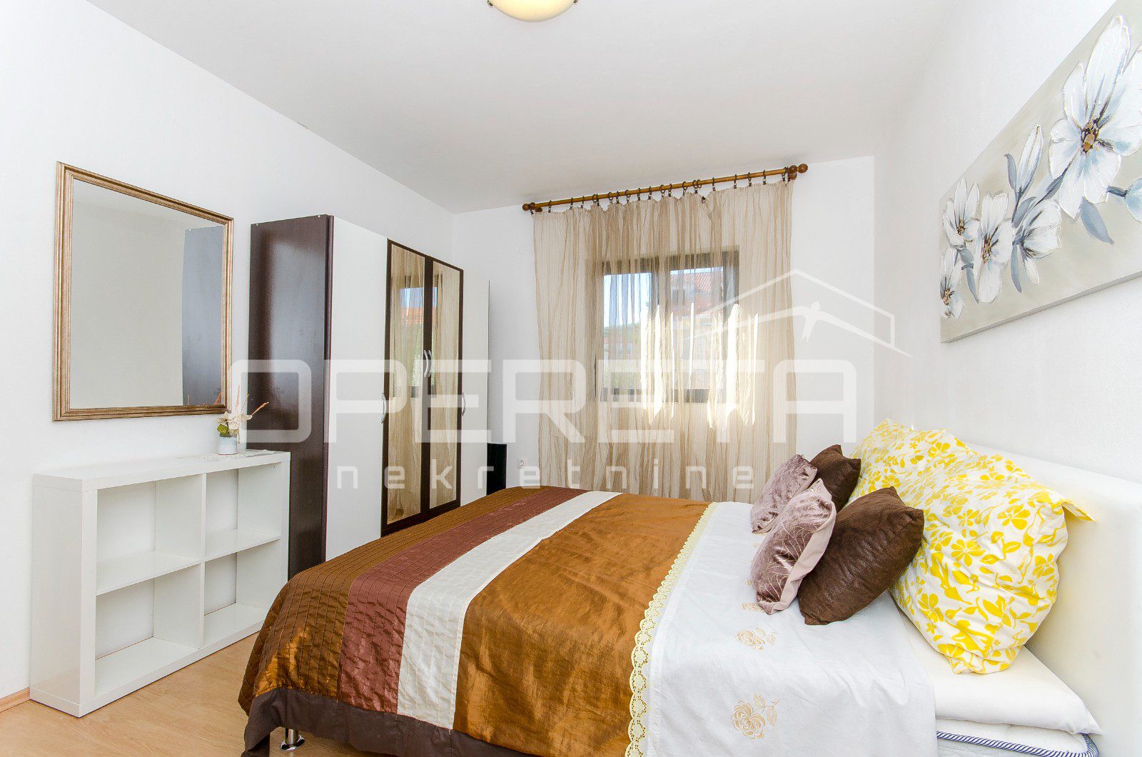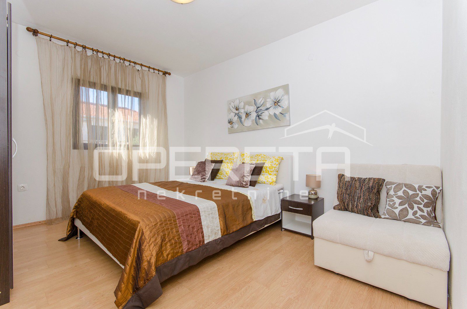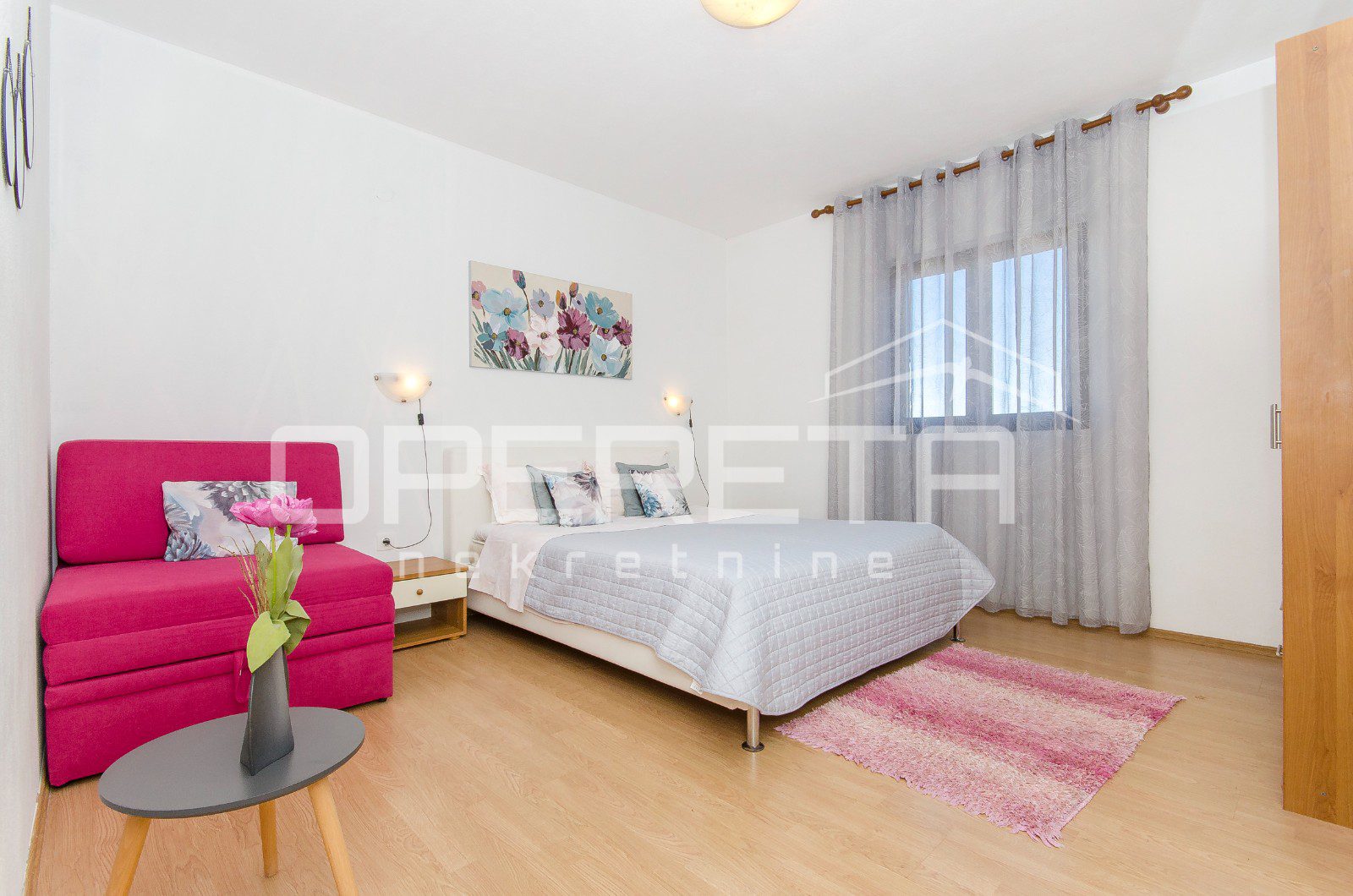 Ukupno raspolaže s tri prostrane spavaće sobe. Na donjoj etaži nalazi se ugodan dnevni boravak povezan s kuhinjom i blagovaonicom, jedna spavaća soba, moderna kupaonica i praktično spremište. Prostor je svijetao i funkcionalan, osmišljen za svakodnevni boravak i jednostavnost korištenja.