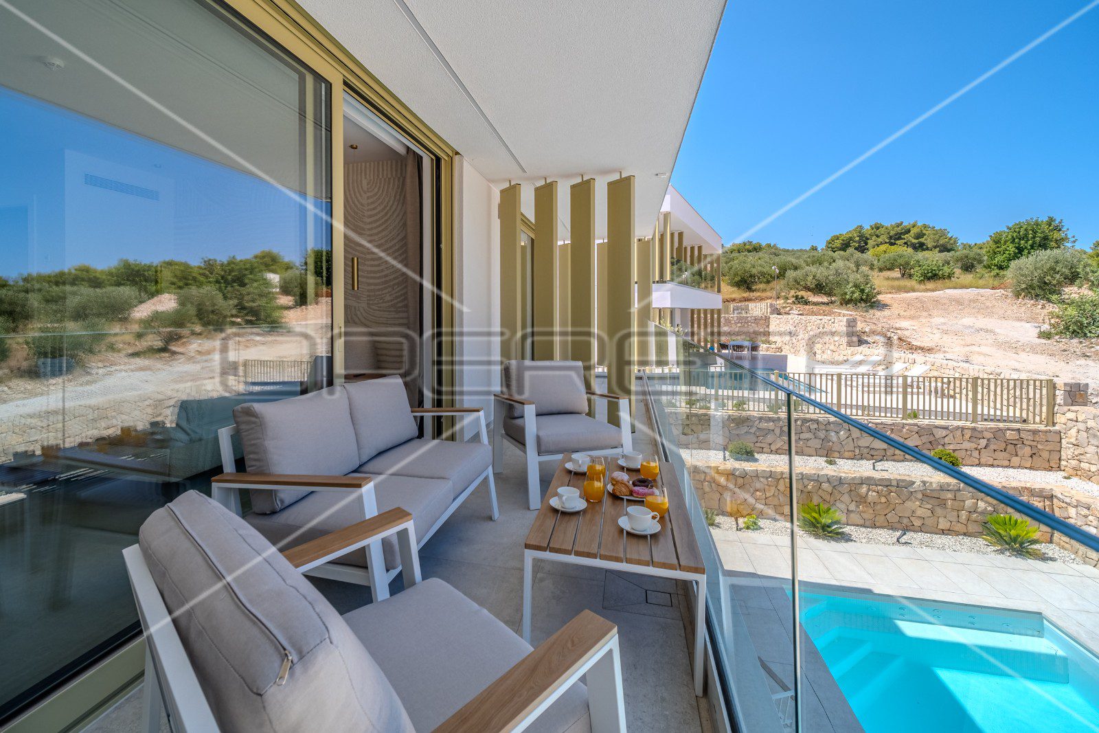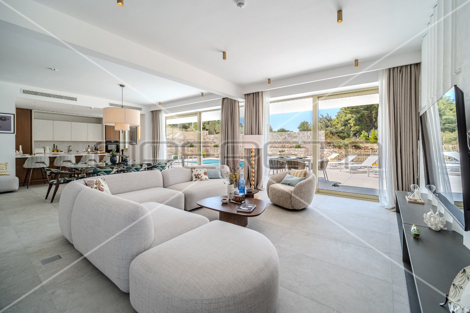 Smještena u idiličnom Sutivanu, ova luksuzna vila pruža izvanrednu priliku za život u skladu s prirodom, na prostranoj parceli od 576 m². Sa 234 m² stambenog prostora, vila nudi savršenu ravnotežu između elegantnog dizajna i funkcionalnosti, uz neprekinute poglede na kristalno čisto more i okolno zelenilo.