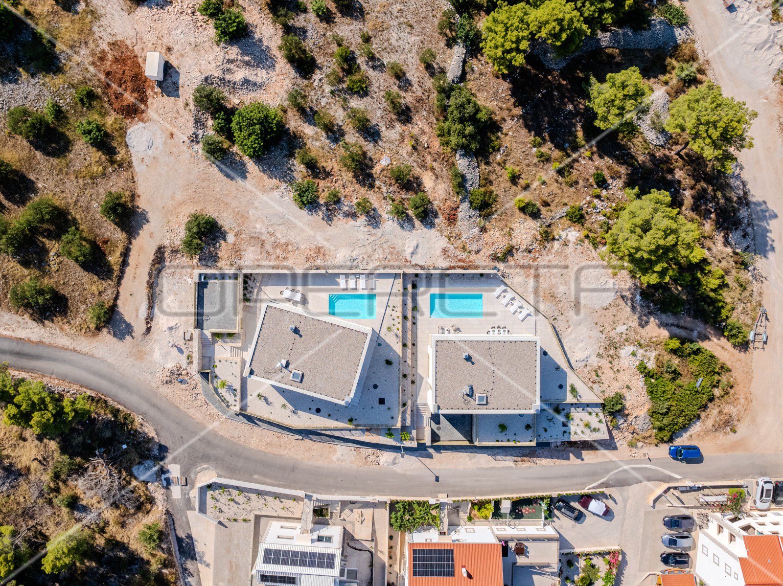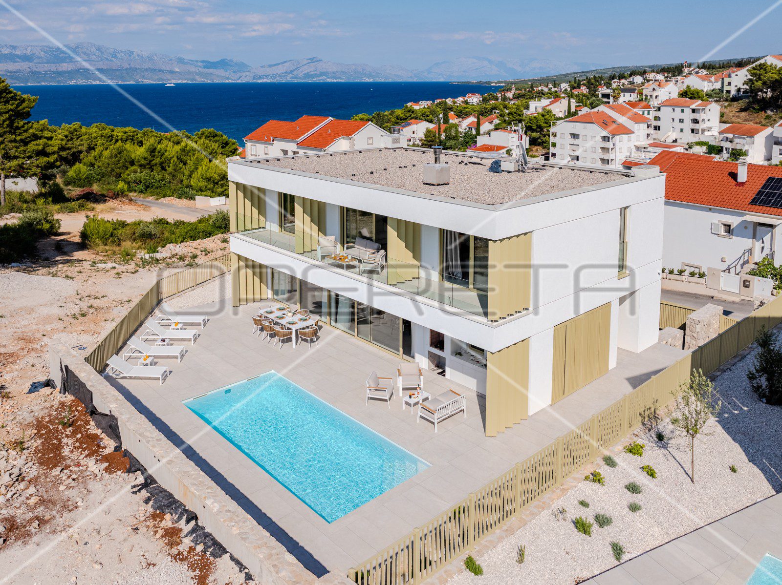 Fasada vile prekrivena je autentičnim kamenom s Brača, dok je unutrašnjost opremljena s pripremom za podno grijanje i mogućnošću individualnog odabira vanjske toplinske pumpe. Kupaonice uključuju električno podno grijanje za dodatni komfor.