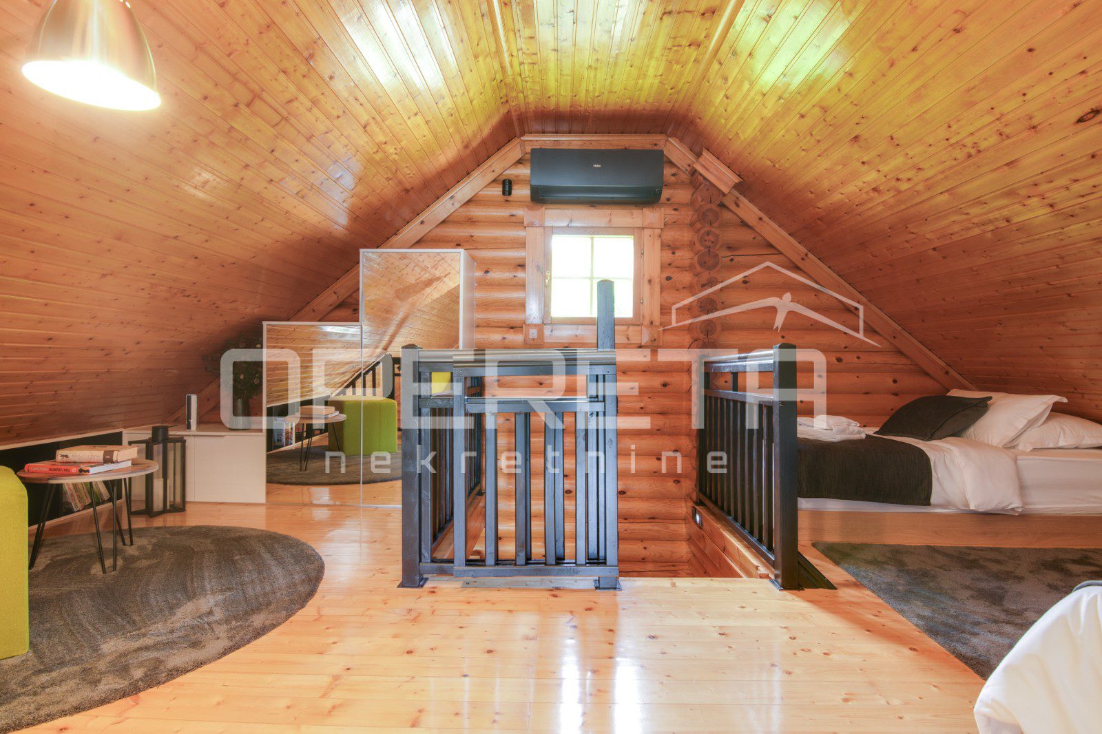 Visoko prizemlje se sastoji od kuhinje s dnevnim boravkom i blagovaonicom, spavaće sobe i kupaonice. U potkrovlju su smještene dvije spavaće sobe.