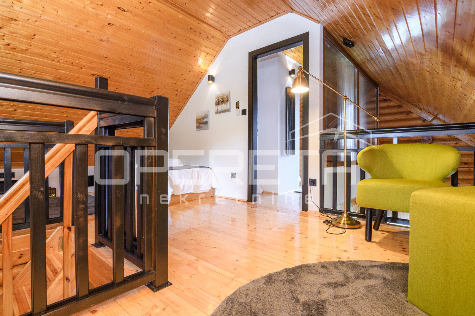Kuća (150m2) se sastoji od podruma gdje je smješten mini wellness s jaccuzijem i saunom te prostorom za odmor, kupaonicom i čajnom kuhinjom.