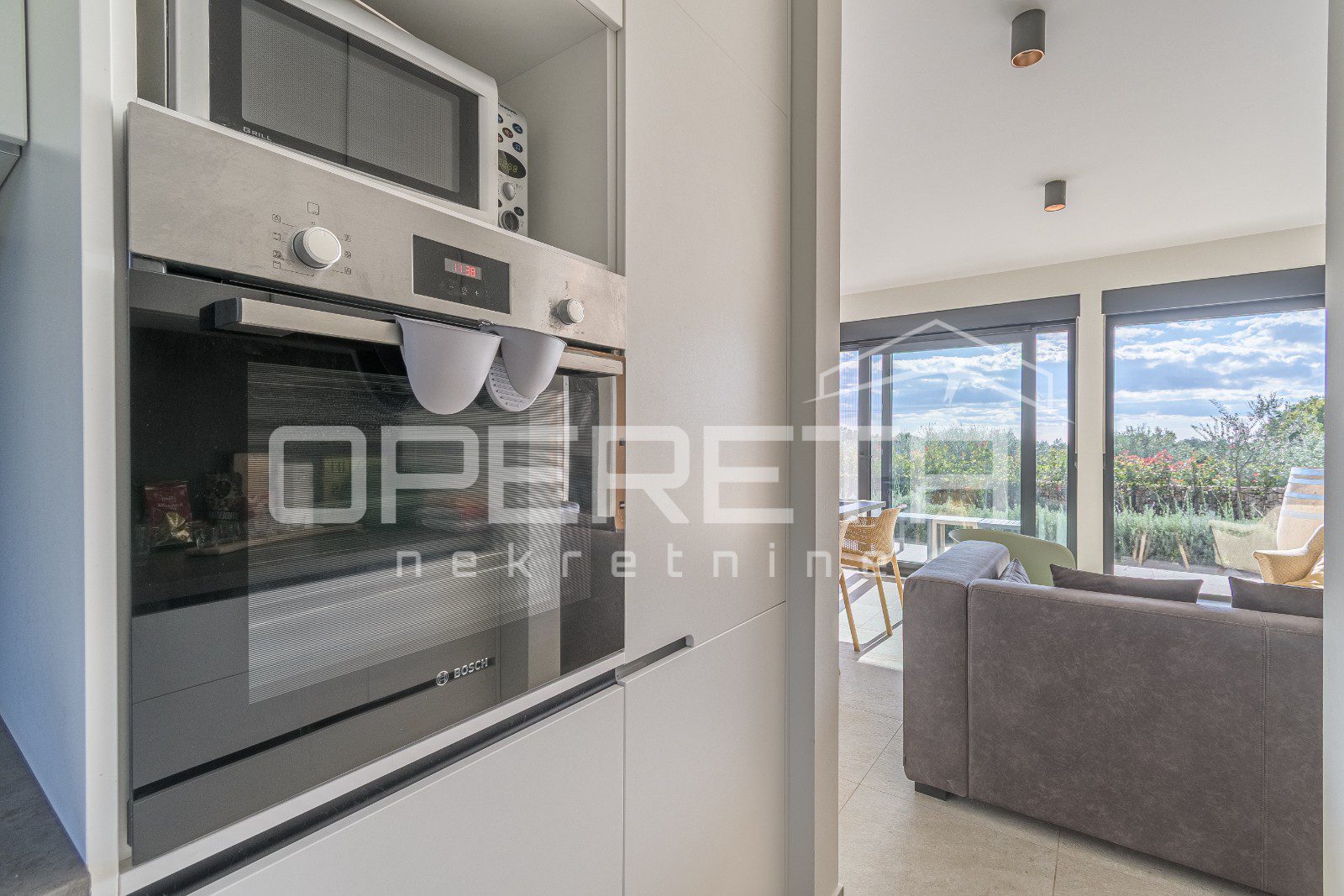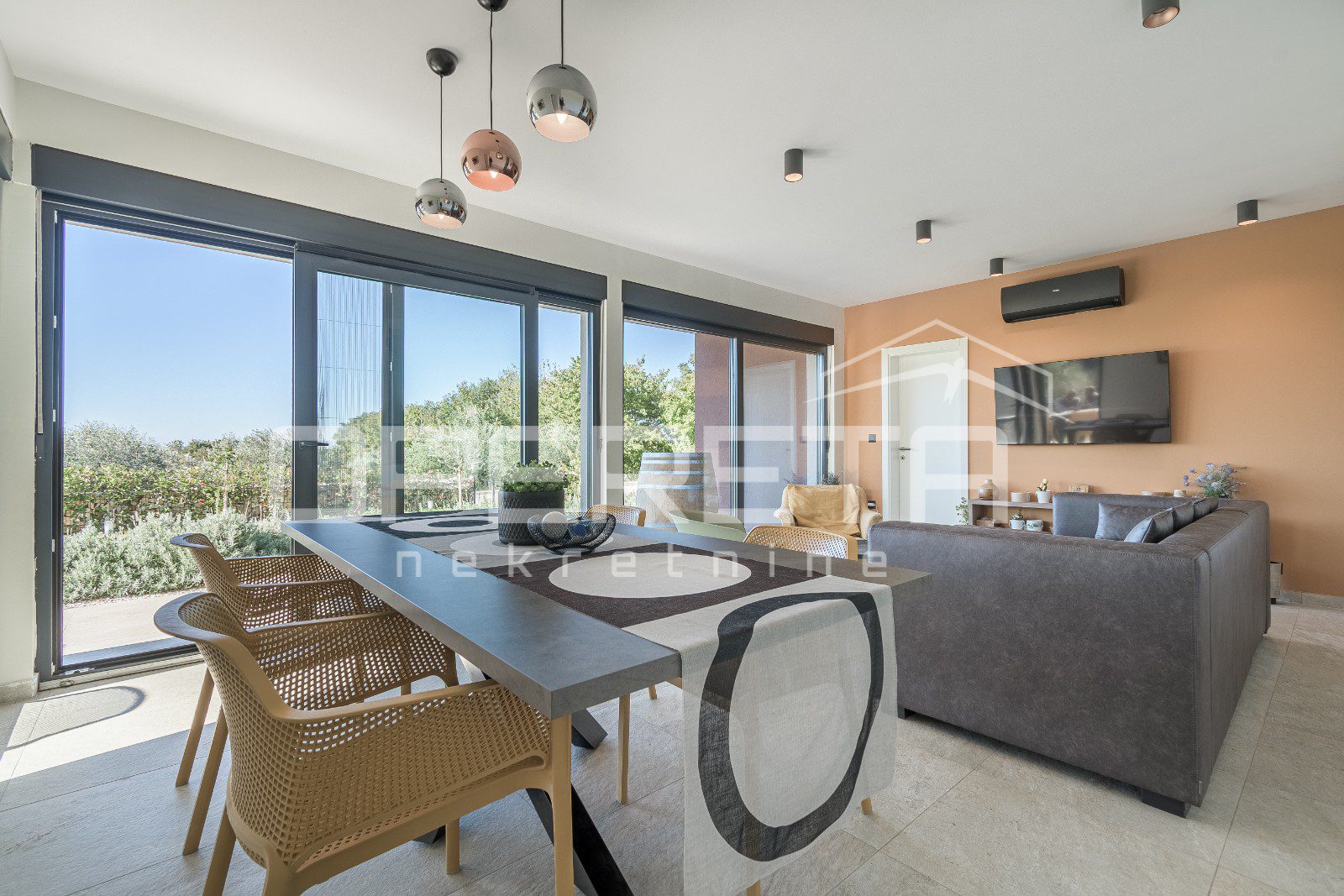Na svega nekoliko minuta vožnje od Sv. Lovreča, smjestila se ova novoizgrađena, potpuno uređena, moderno opremljena kuća koja nudi savršen spoj mediteranskog šarma, udobnosti i privatnosti.