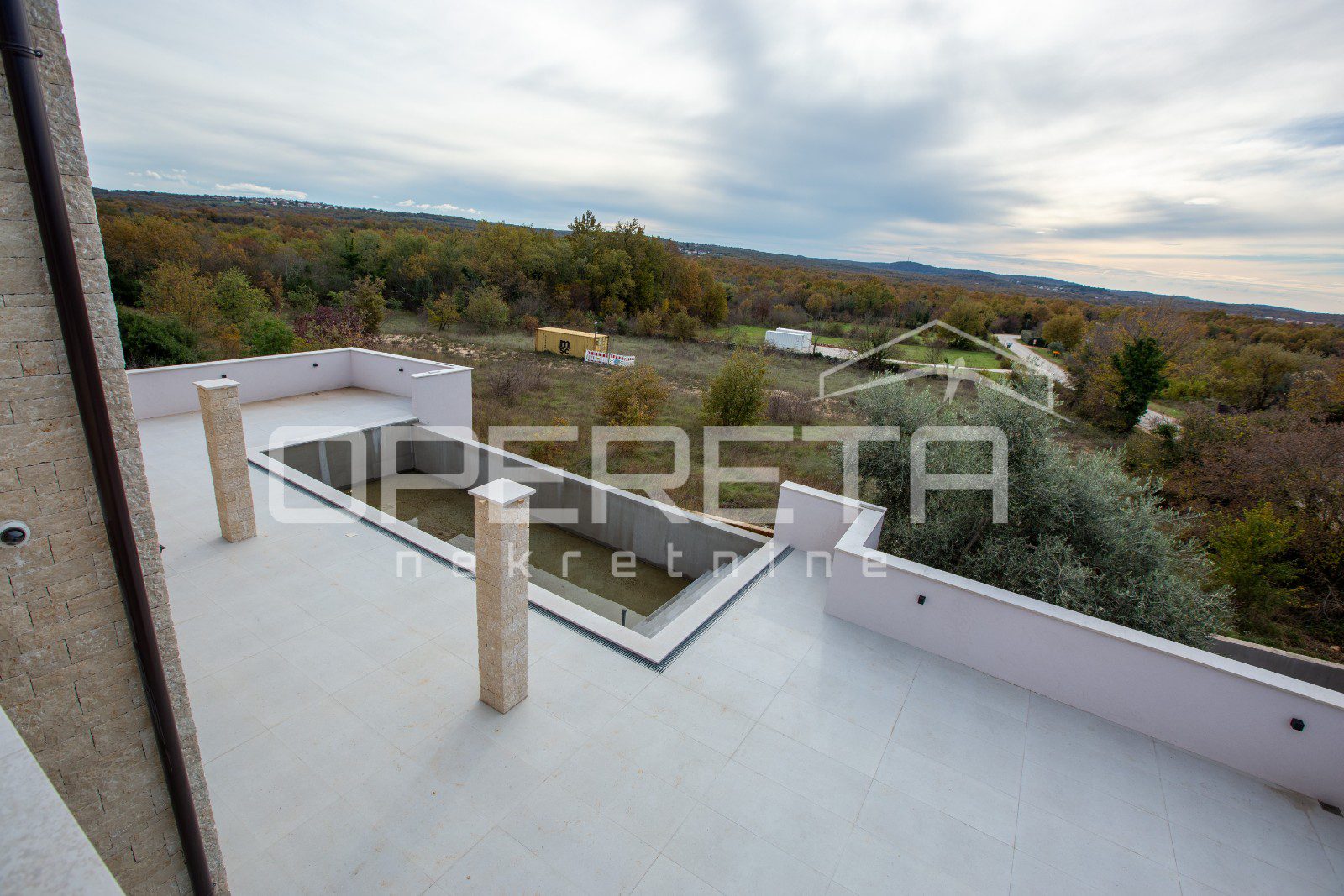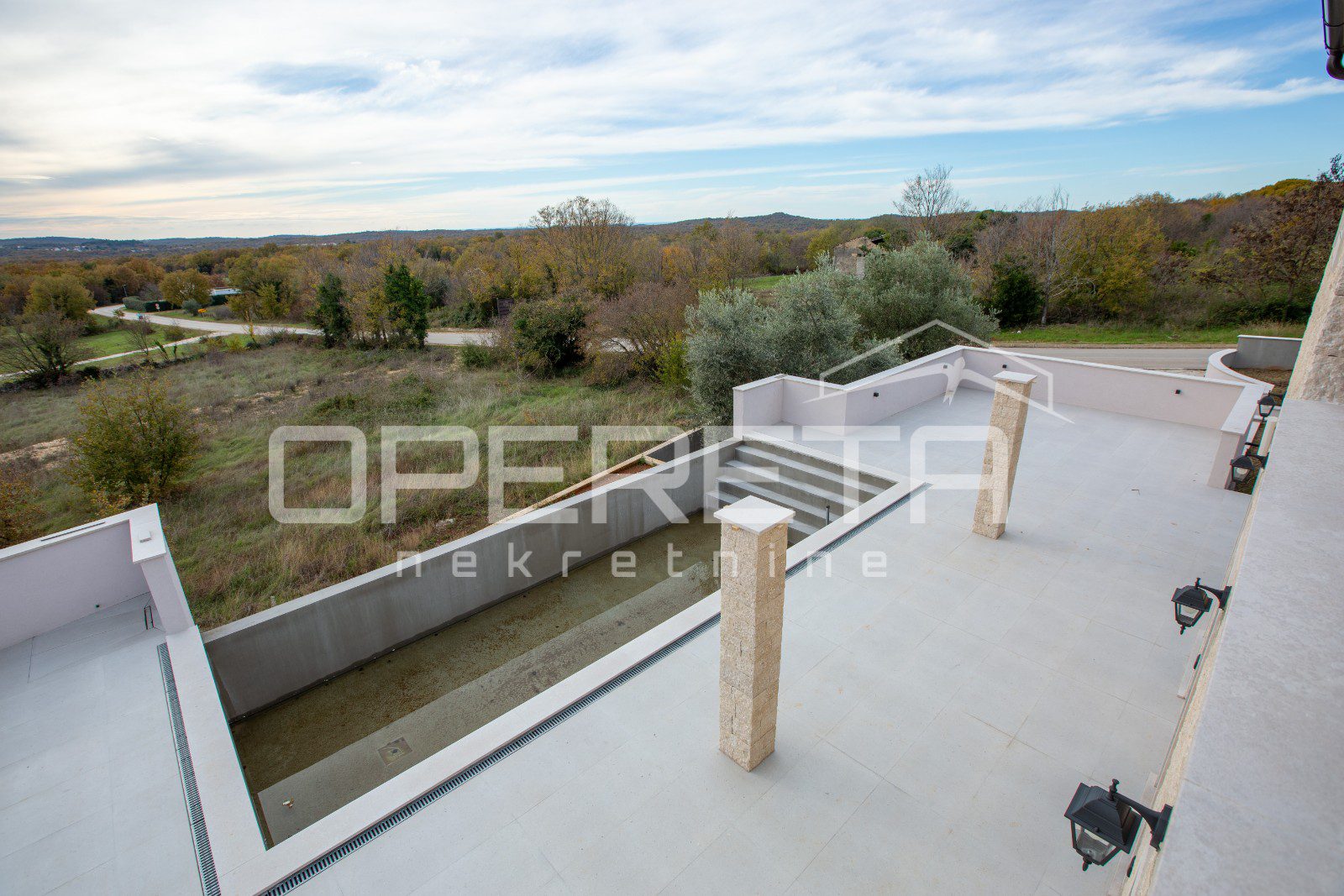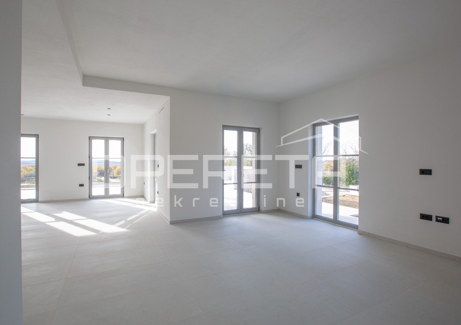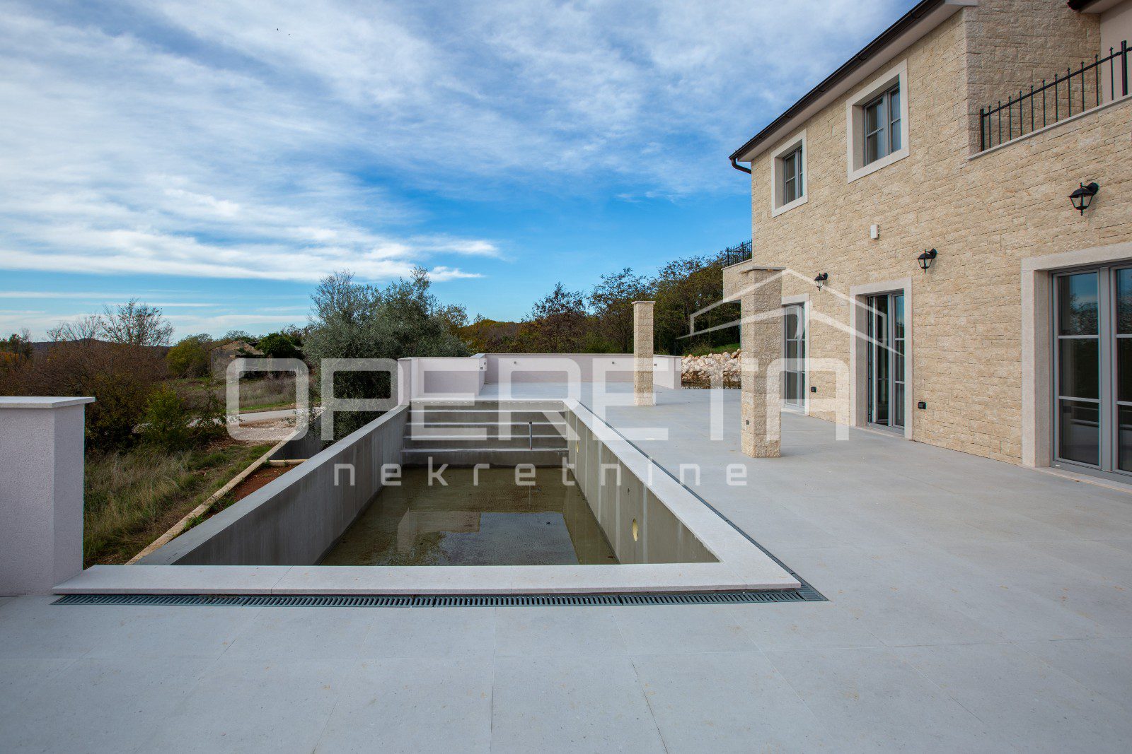 Novoizgrađena samostojeća kuća s otvorenim pogledom, prostranom garažom i prekrasnim infinity bazenom.
