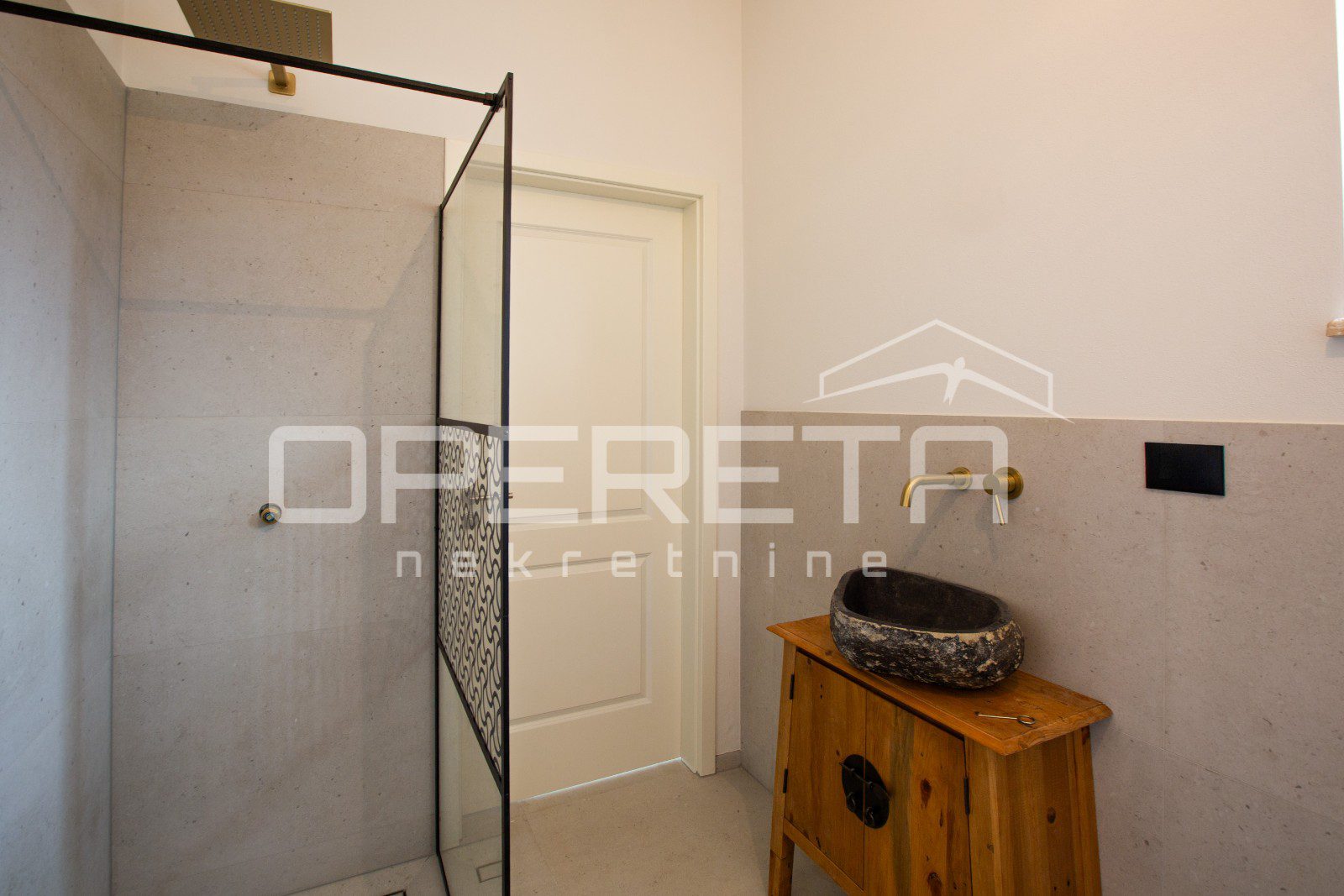 Ova nekretnina od 210 m² uključuje ukupno pet spavaćih soba, od kojih se dvije nalaze u prizemlju. Tu su i tri potpuno opremljene kupaonice te dodatni gostinjski toalet. Prostrana kuhinja povezuje se s blagovaonicom i dnevnim boravkom, koji imaju izlaz na terasu, a tu se nalazi i infinity bazen s otvorenim pogledom, kao i garaža za dva automobila.