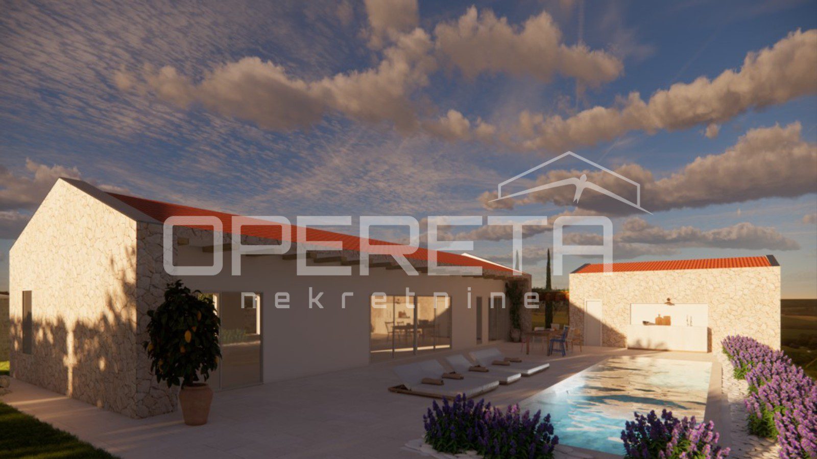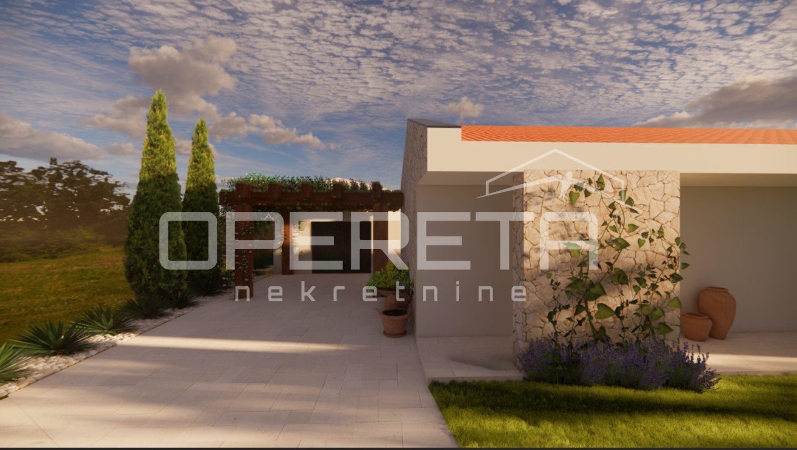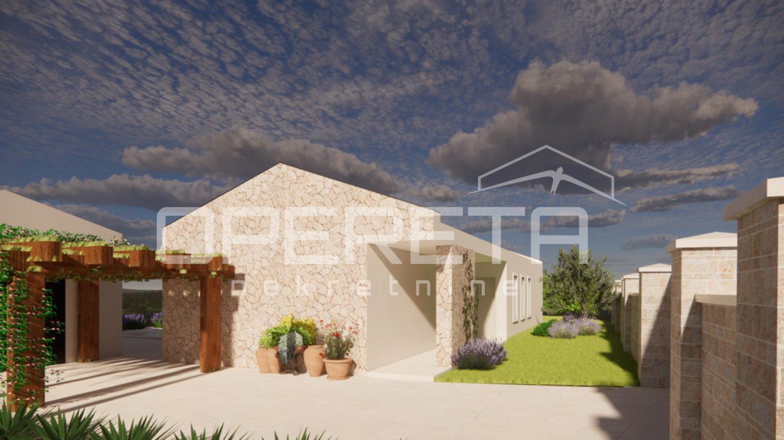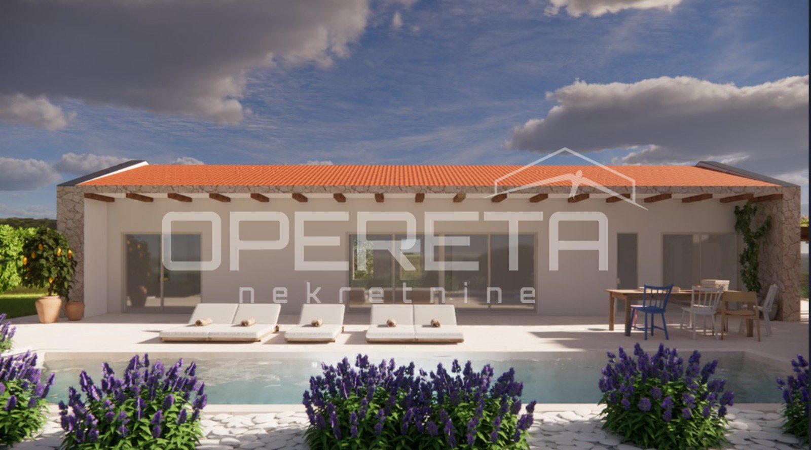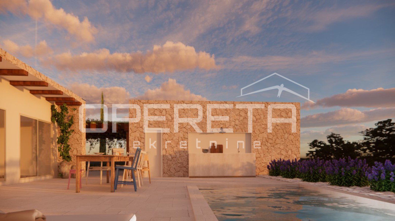 Ova dvosobna kuća nudi dvije spavaće sobe s kupaonicama, te prostran otvoreni koncept kuhinje i dnevnog boravka s direktnim izlazom na terasu i bazen. Dodatno, tu su WC u ulaznom hodniku i praktično spremište.