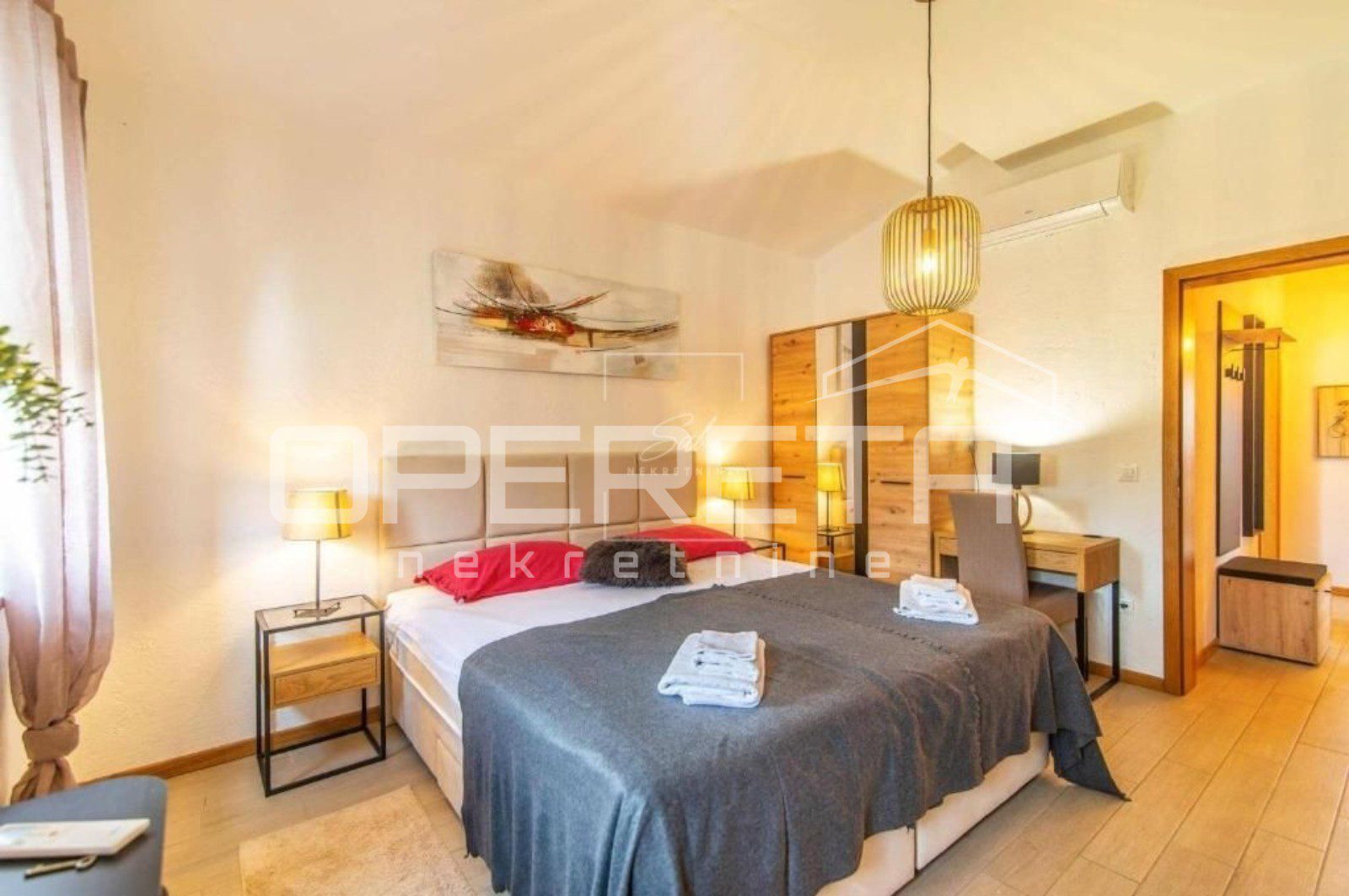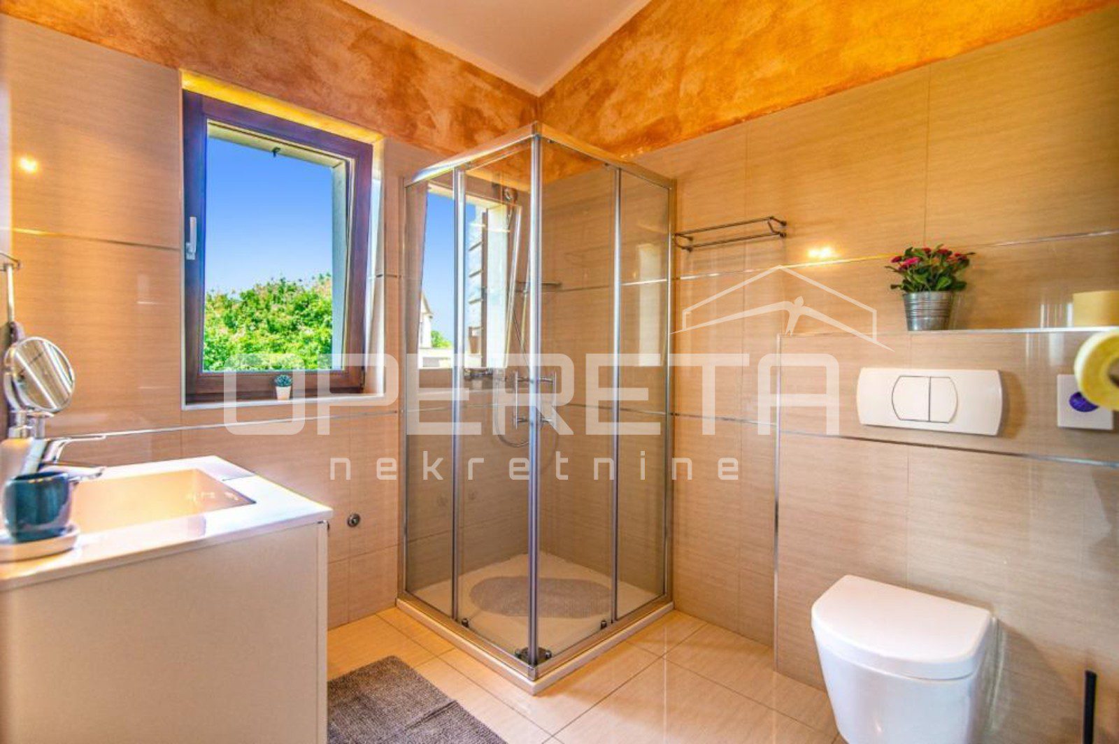 Na katu su četiri spavaće sobe, od kojih jedna ima vlastitu kupaonicu s walk-in tušem, te dodatna kupaonica.