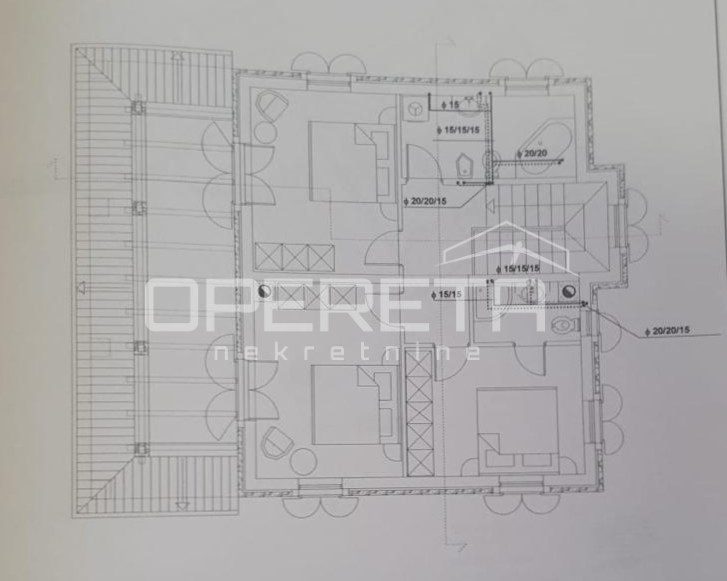 Na katu su tri spavaće sobe i dvije kupaonice.