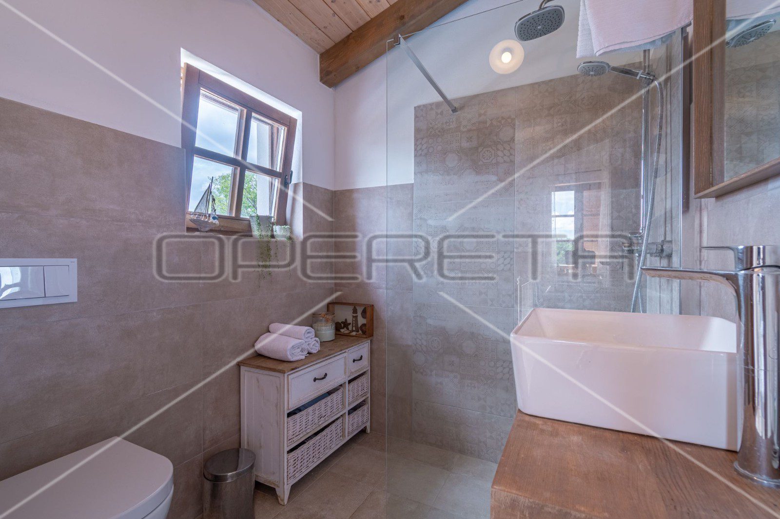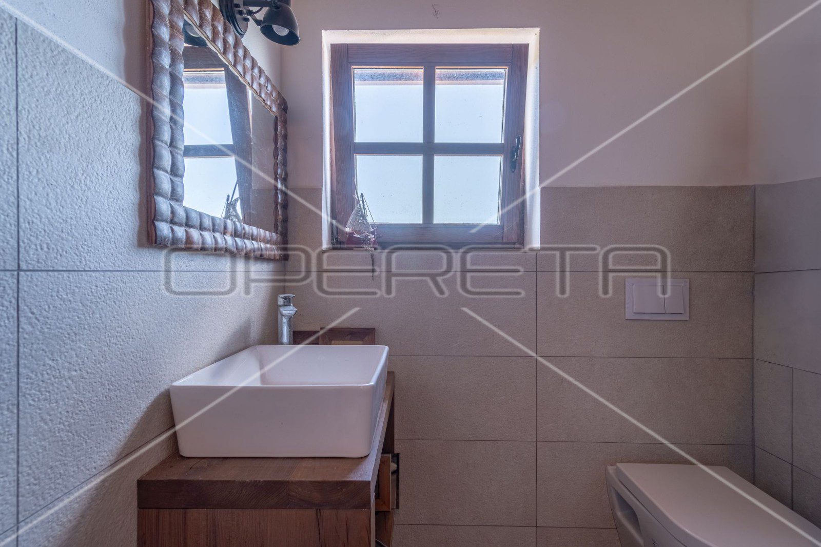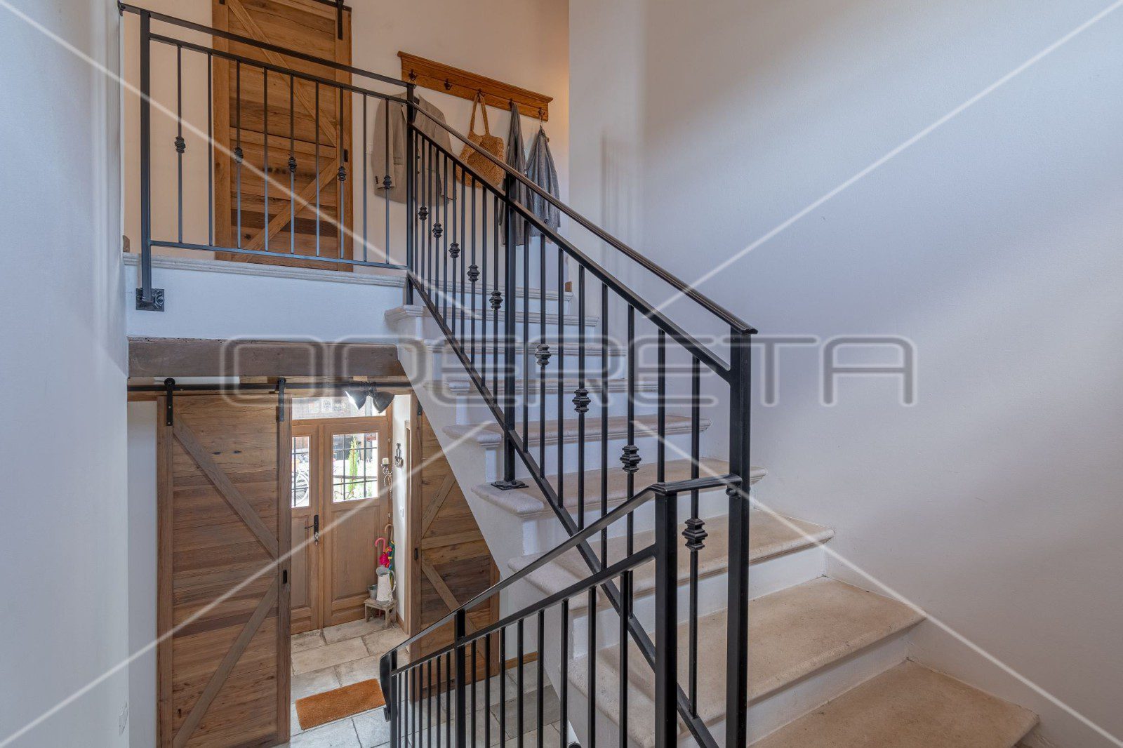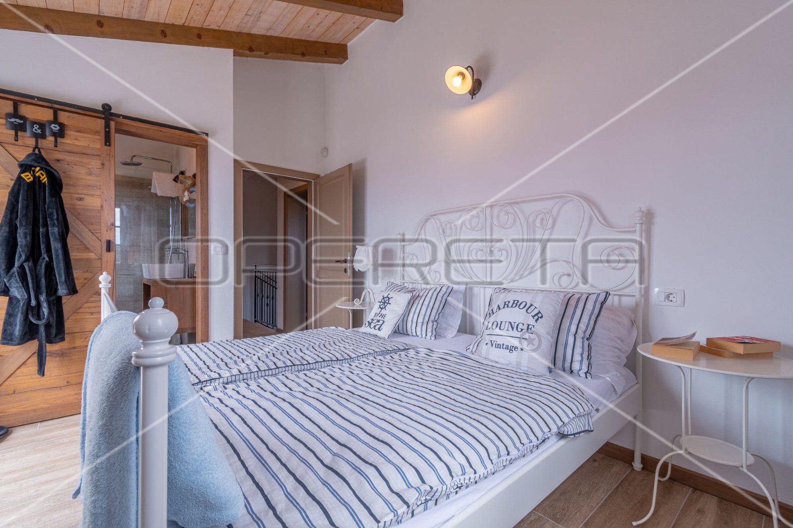 Kuća je uređena u predivnom rustikalnom stilu s puno stilskih detalja i autentičnoj kombinaciji kamena i drva.