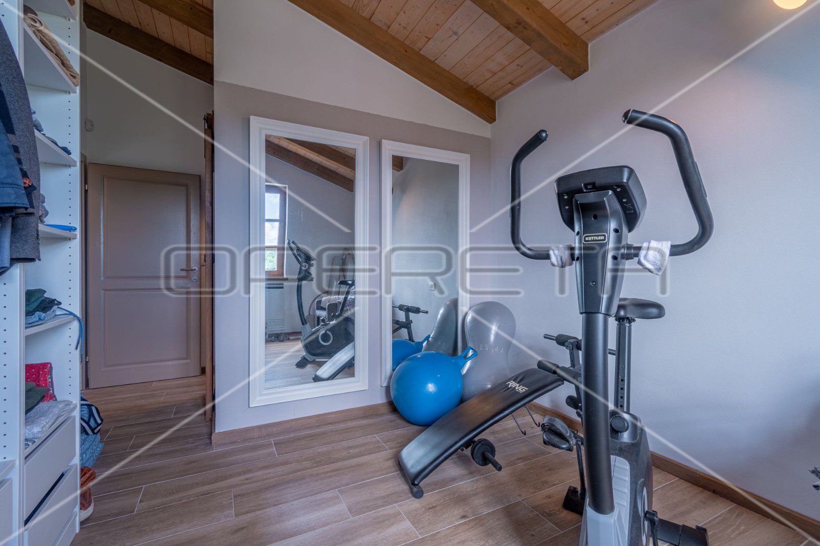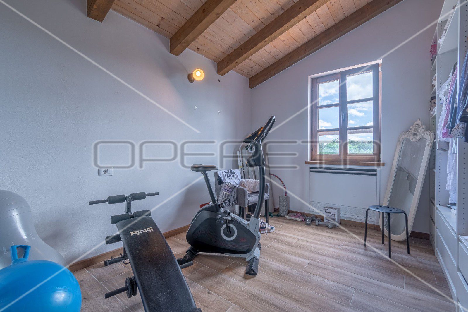 U prizemlju se nalaze hodnik, dnevni boravak s kaminom, kuhinja i blagovaonica s izlazom na natkrivenu terasu gdje se smjestila i ljetna kuhinja, ostava i toalet. Stepenište vodi na kat gdje su četiri spavaće sobe, svaka sa svojom vlastitom kupaonicom, dok je jedna od soba trenutno u funkciji teretane. Dvije od soba imaju vlastiti balkon.