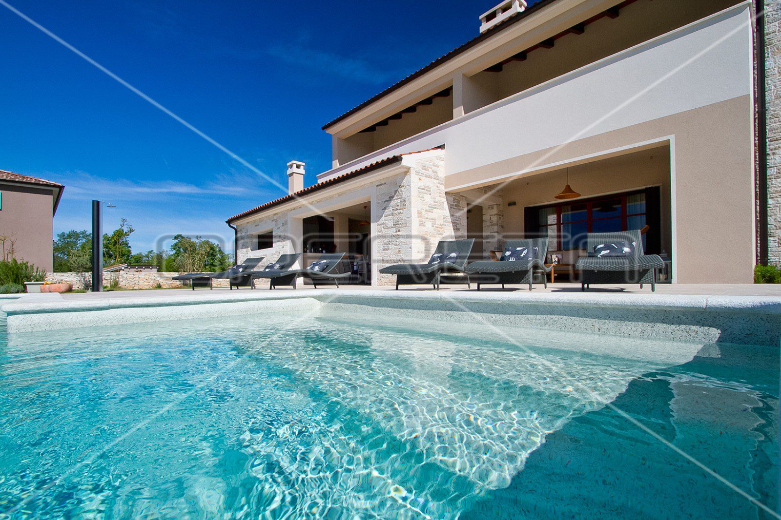 U prodaji je luksuzna vila smještena u srcu Istre stambene površine 400m2. Izgrađena je na parceli veličine 1986m2 na kojemu je izgrađen i bazen veličine 60m2(6×10).